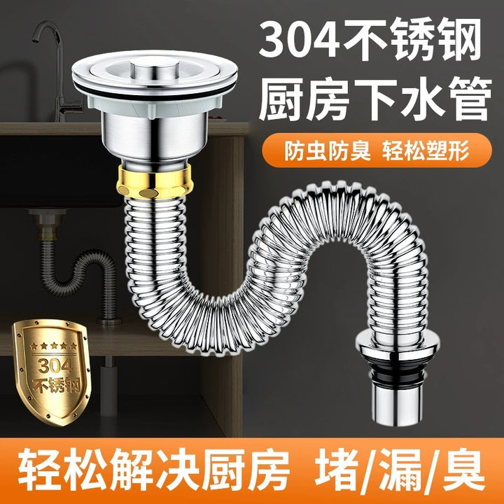 Kitchen 304 stainless steel vegetable basin sewer pipe accessories dishwasher sink sewer deodorant drain pipe set