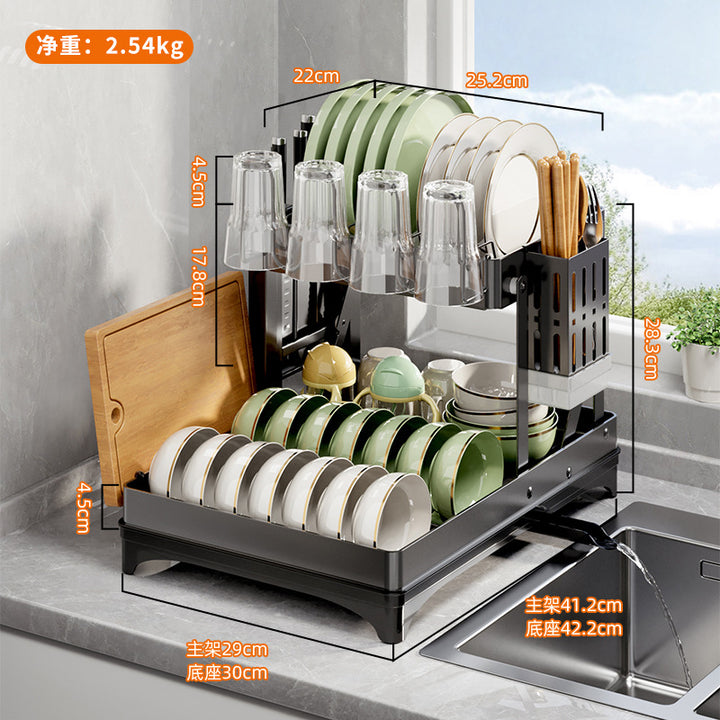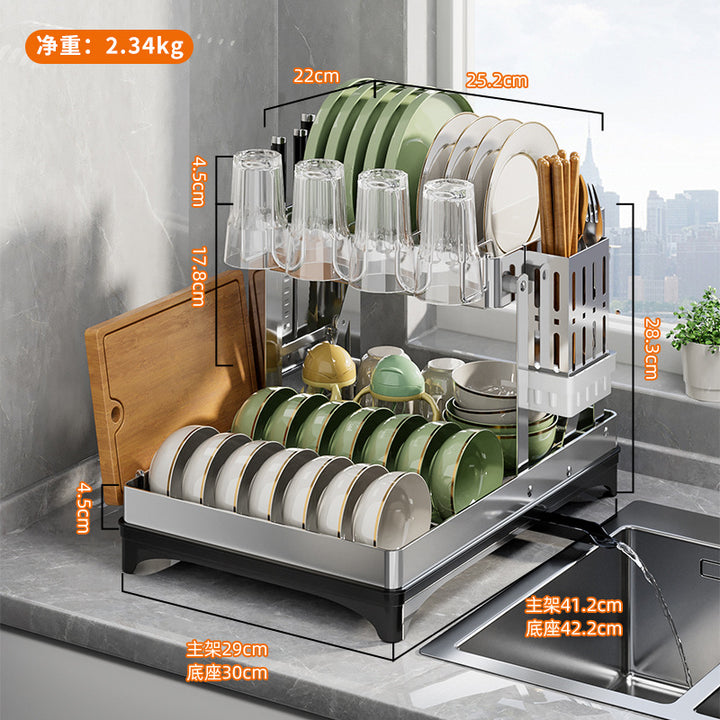 Kitchen Dish Rack Thickened Stainless Steel Shelf Household Multifunctional Drain Rack Double-layer Tableware Cutting Board Storage Rack