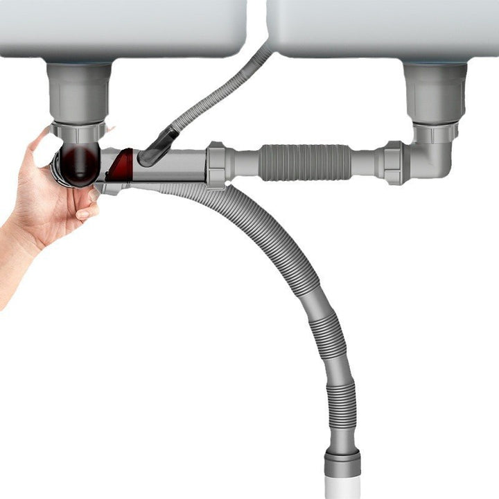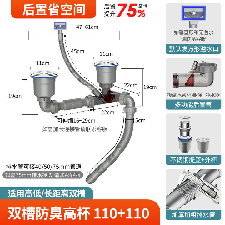 Kitchen double-slot sewer can be retractable, anti-odor and anti-blocking sewer pipe, a full set of rear space-saving drain pipe accessories