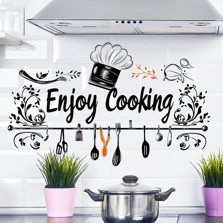 Kitchen English alphabet decorative stickers restaurant window glass black and white removable wall stickers 36060