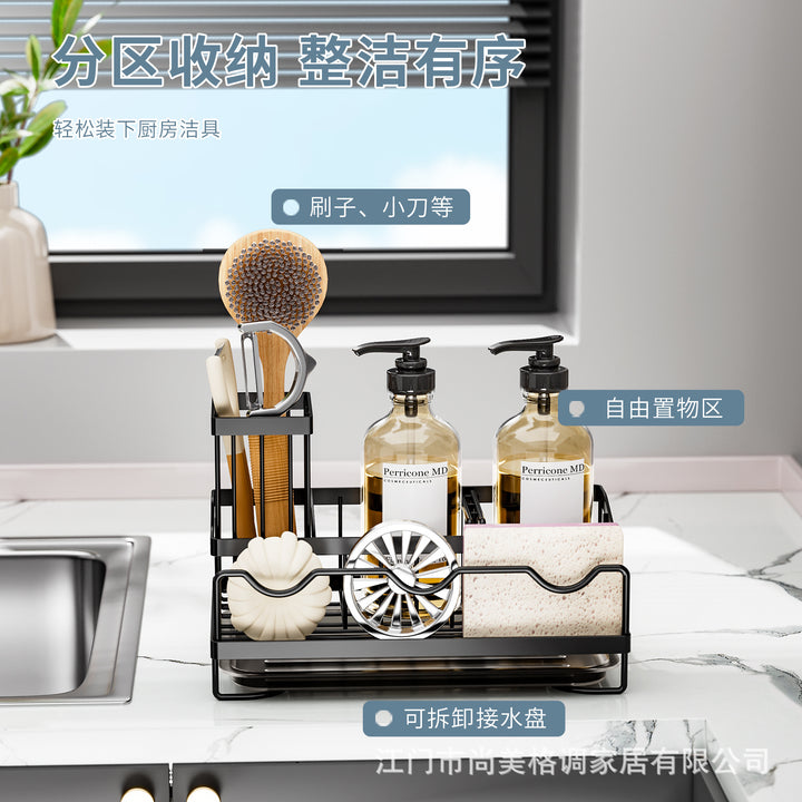 Kitchen faucet rack, sink, steel ball brush, rag basket, countertop, detergent, dishwashing, sponge storage rack