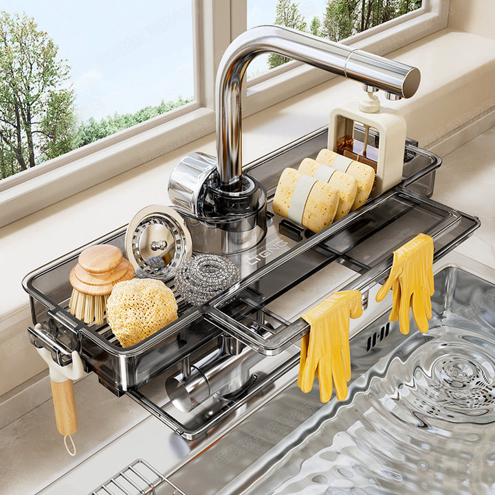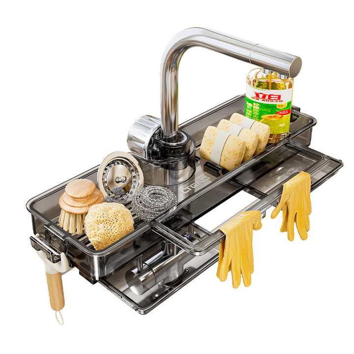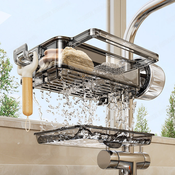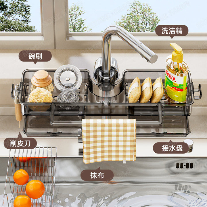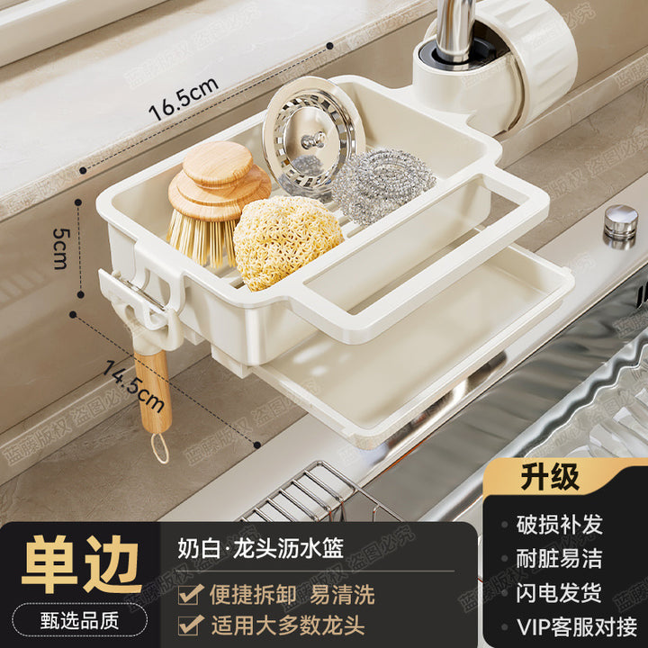 Kitchen faucet rack wall non-punching wall hanging drain rack sponge steel wire ball dishcloth storage rack