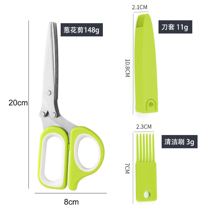 Kitchen five-layer scallion scissors stainless steel multi-functional paper shredding vegetable artifact chives coriander multi-layer scallion cutter