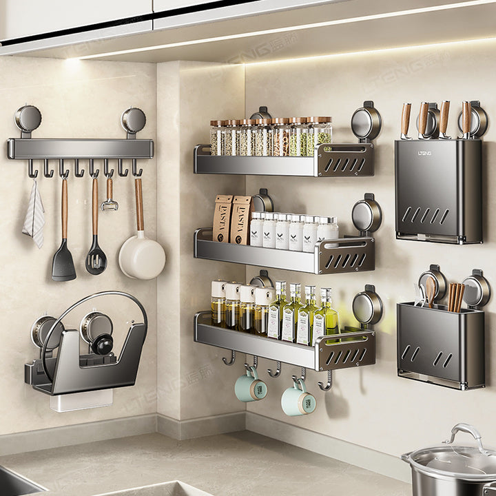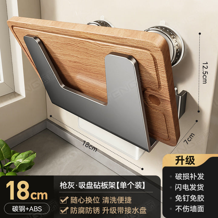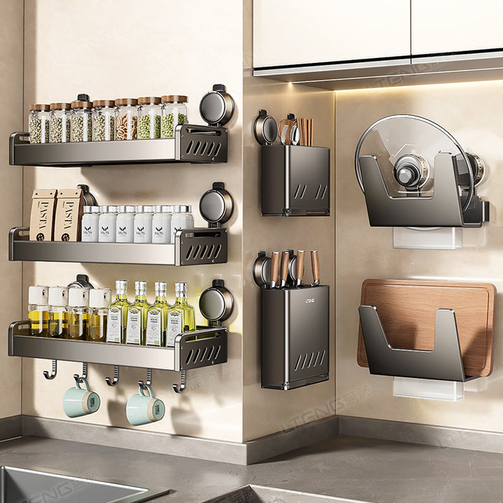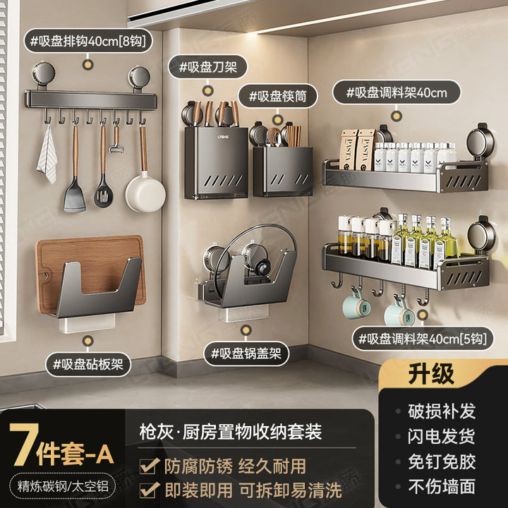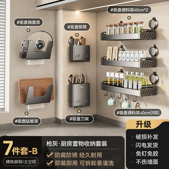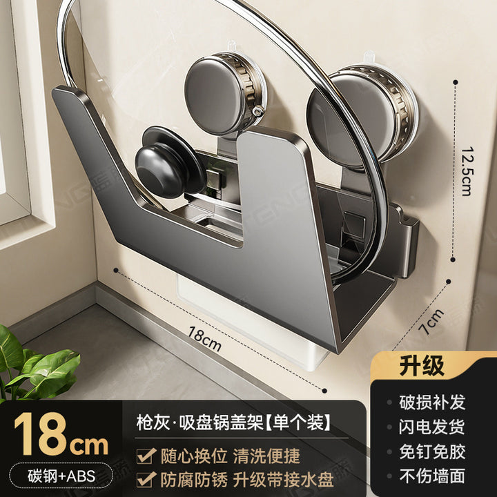 Kitchen Gun Ash Suction Cup Shelf Household Wall Mounted Non-punching Knife Holder Pot Lid Ho...