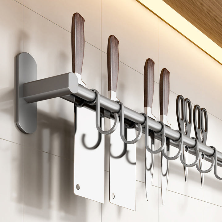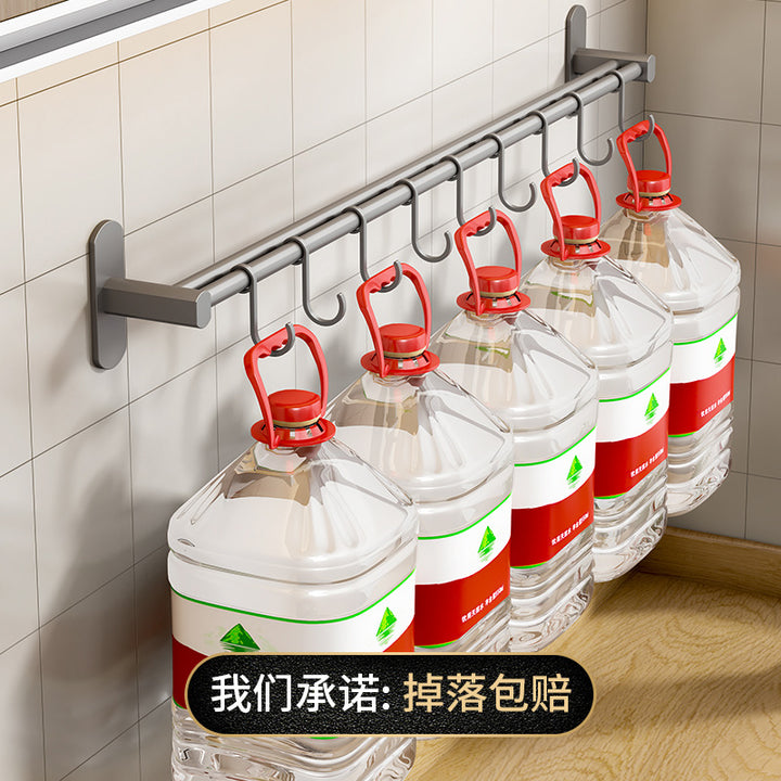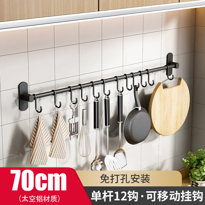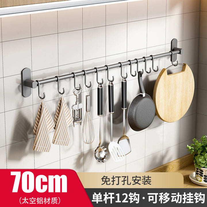 Kitchen hook hanging rod no punching gun gray wall mounted wall knife holder pot cover spatula spoon row hook storage rack