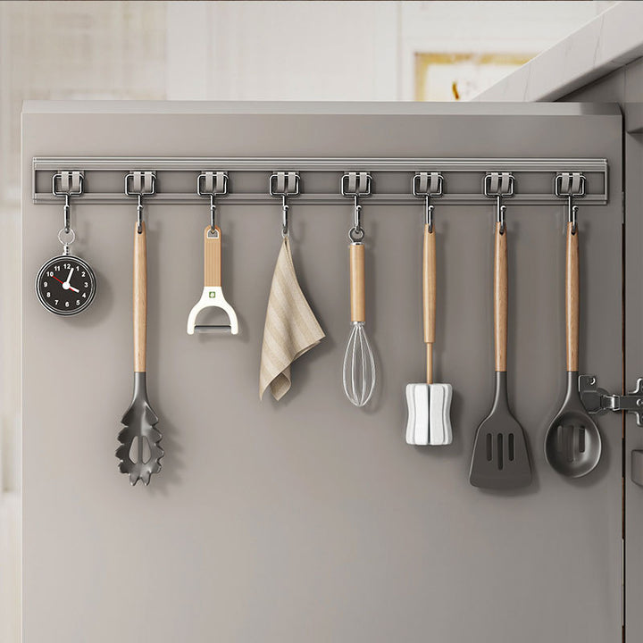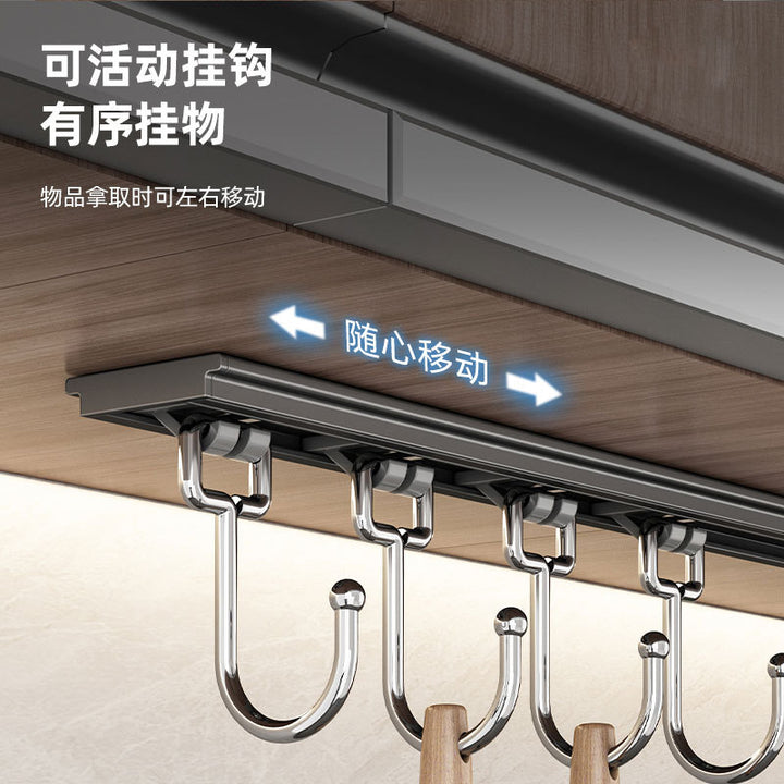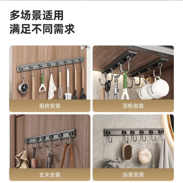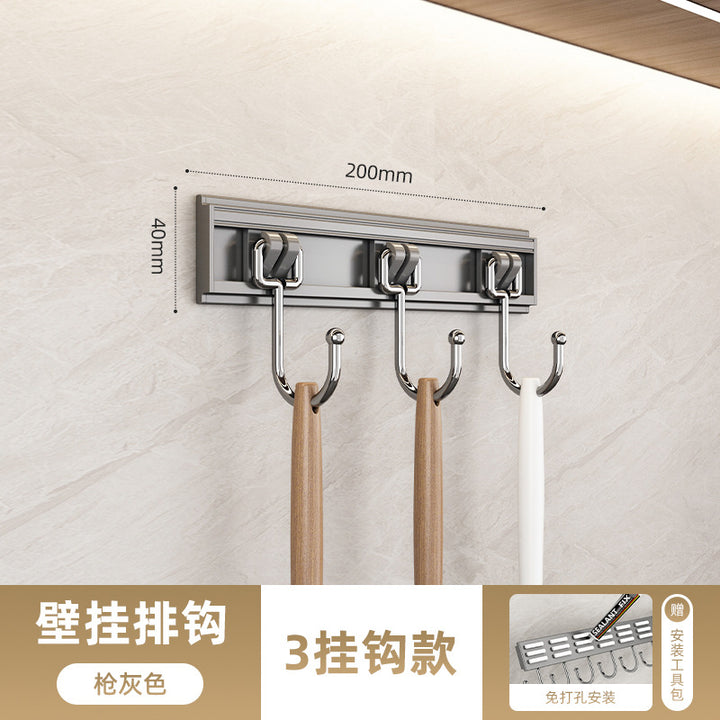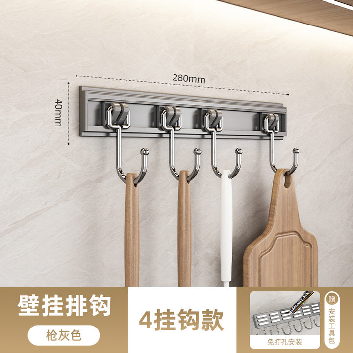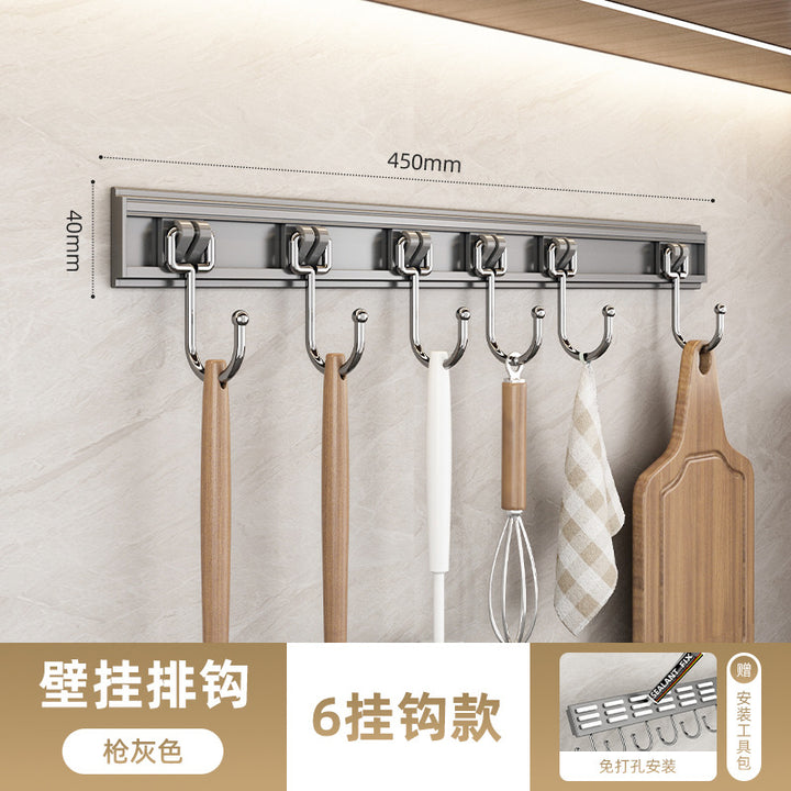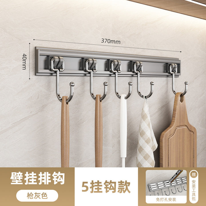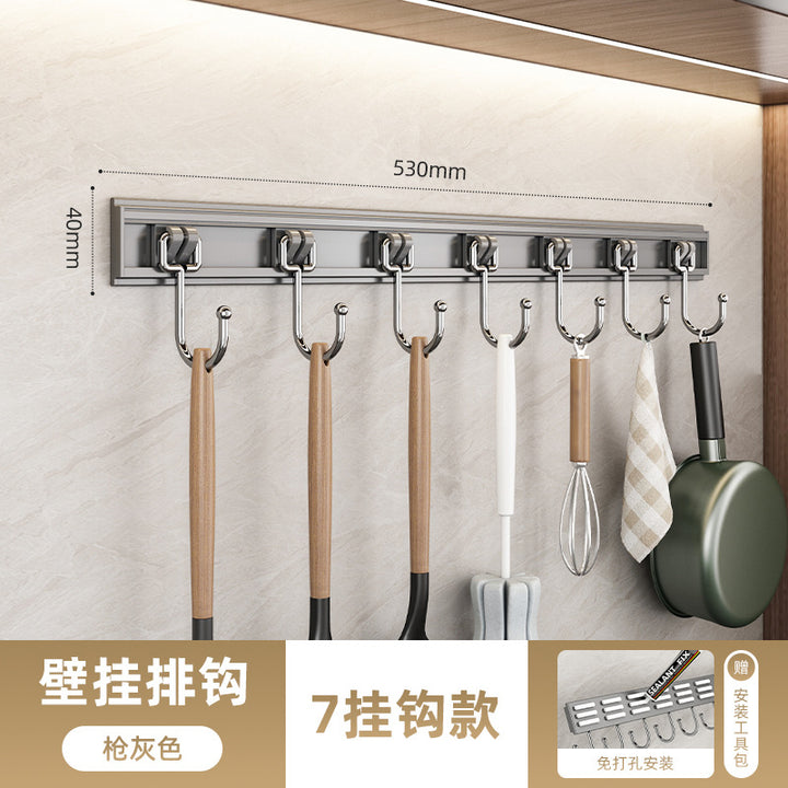 Kitchen hook No punching hanging rod Kitchen shelf Spatula spoon hanger Space aluminum row hook Wall-mounted storage