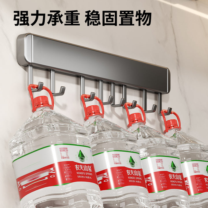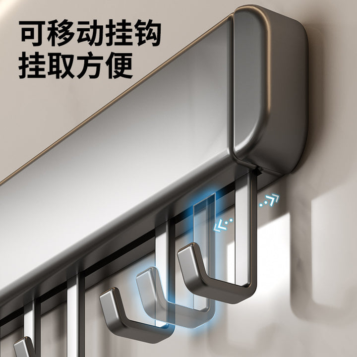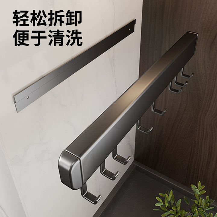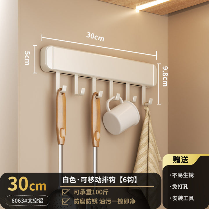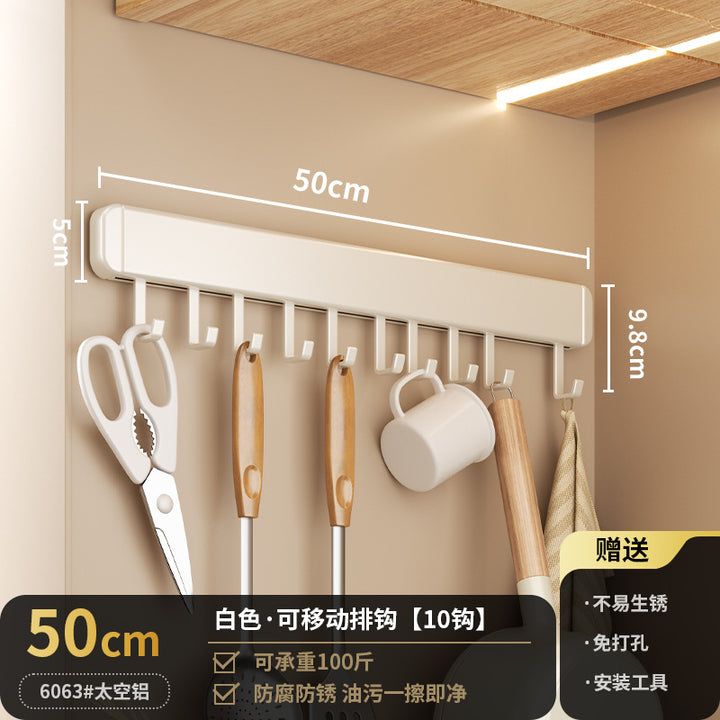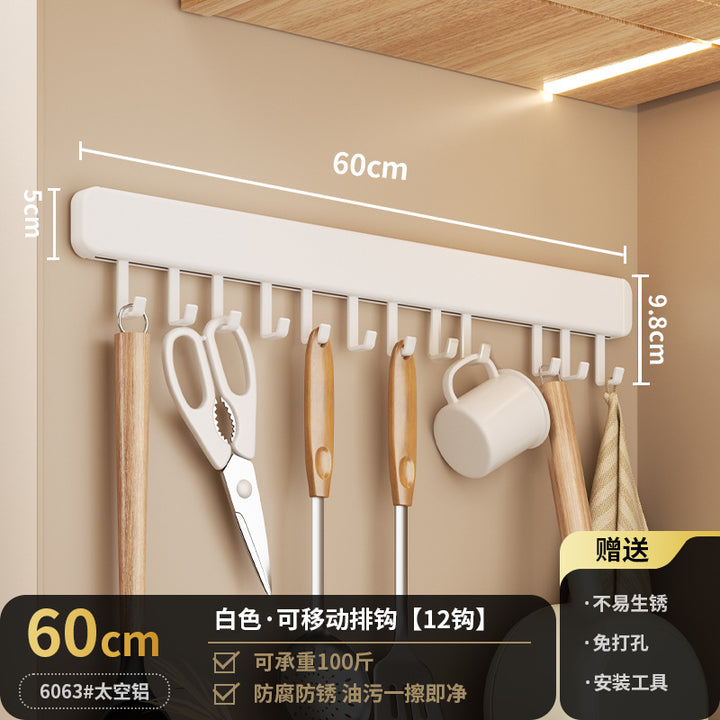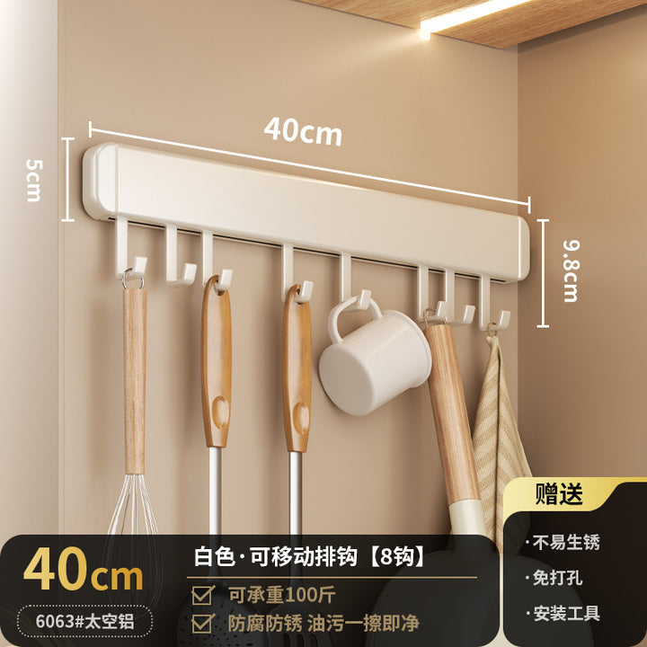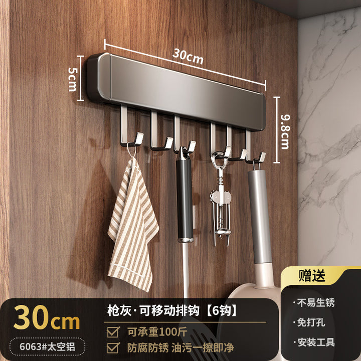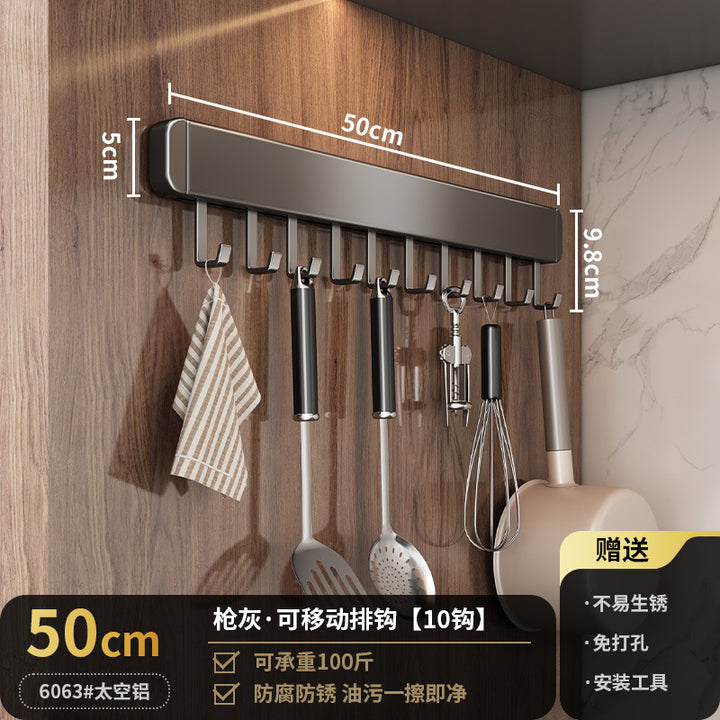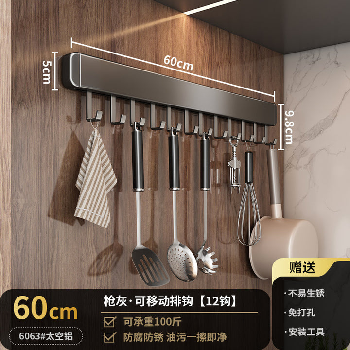Kitchen hook No punching Wall-mounted row hook Mobile gun gray Space aluminum hanging hook Spatula Spoon hanging rod Shelf