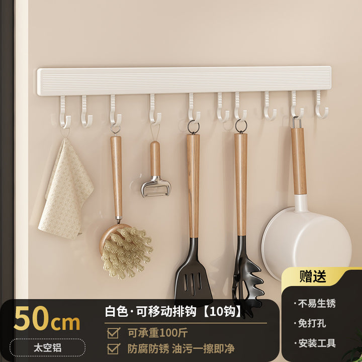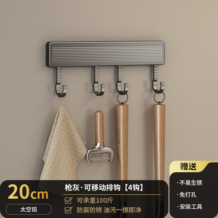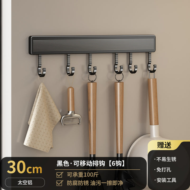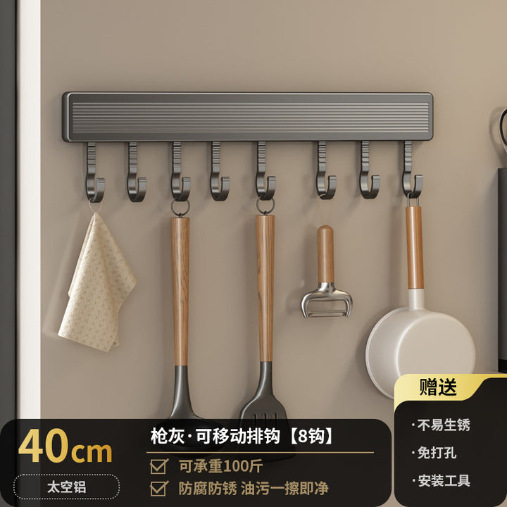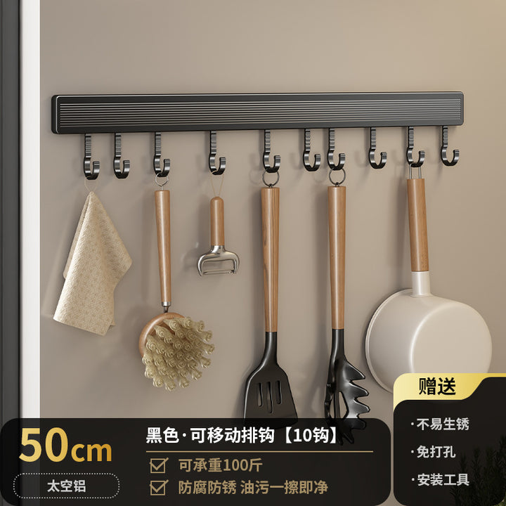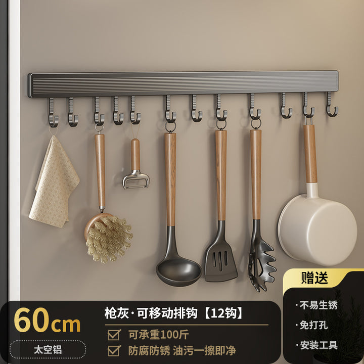 Kitchen Hook Rack Non-punching Wall-mounted Multifunctional Space Aluminum Kitchenware Spoon Spatula Rod Storage Row Hook