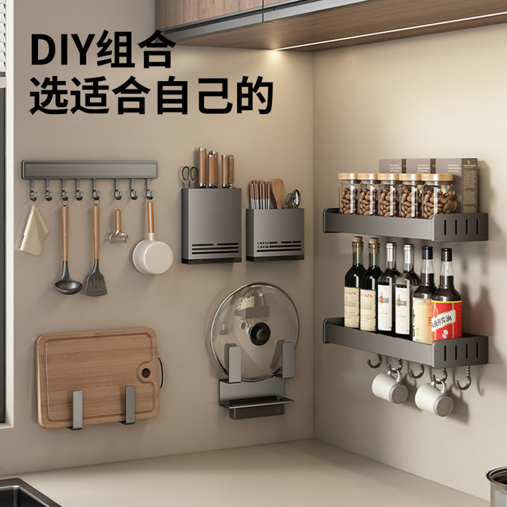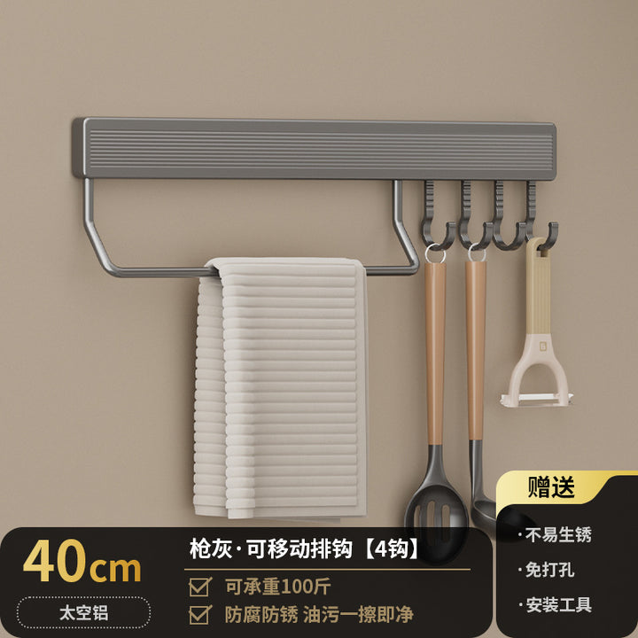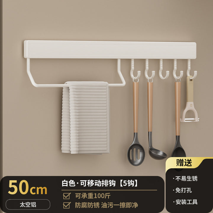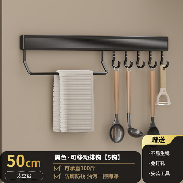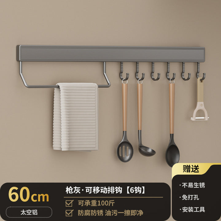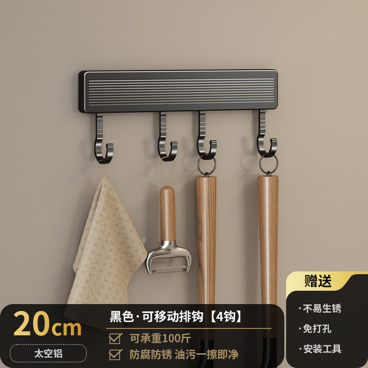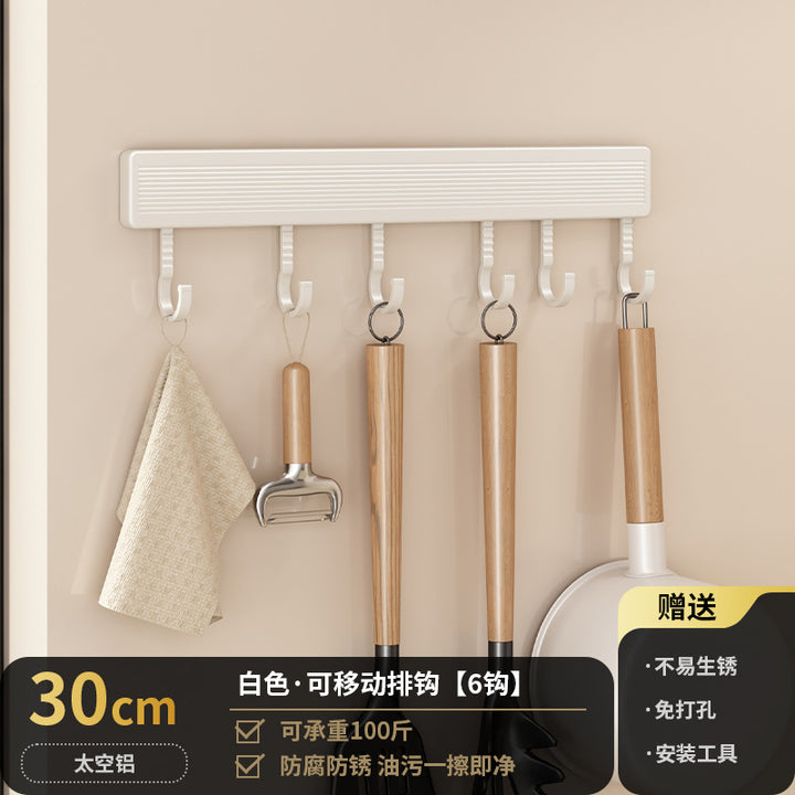 Kitchen Hook Rack Non-punching Wall-mounted Multifunctional Space Aluminum Kitchenware Spoon Spatula Rod Storage Row Hook