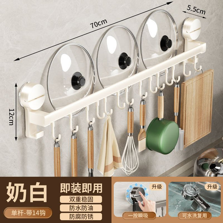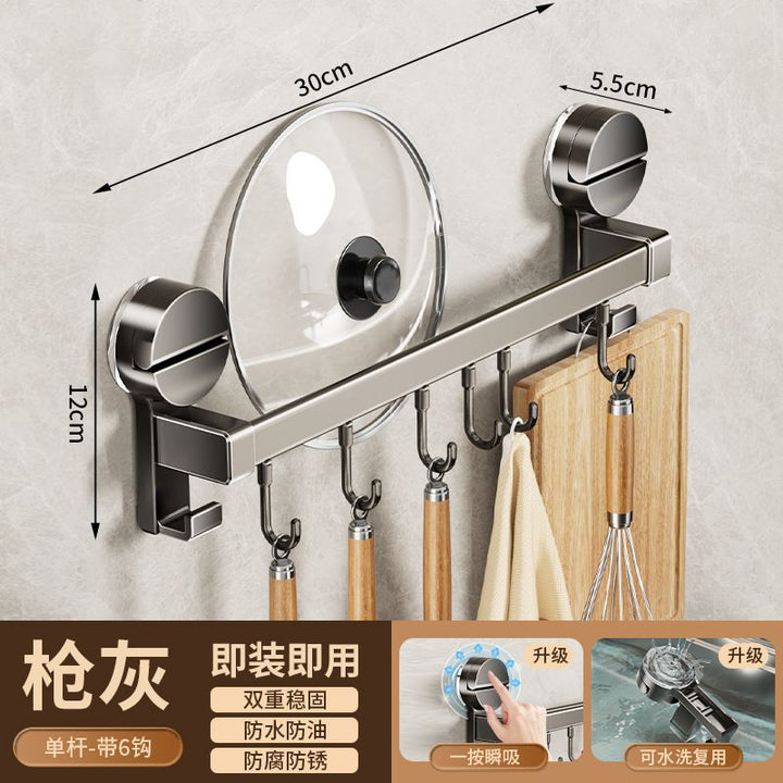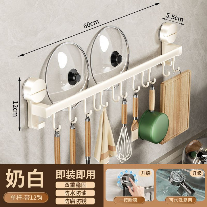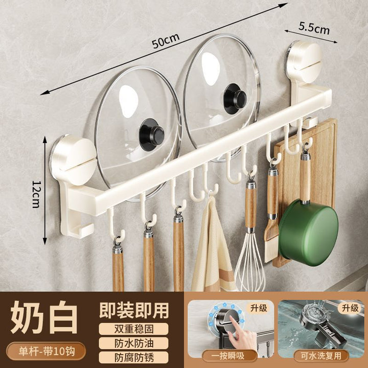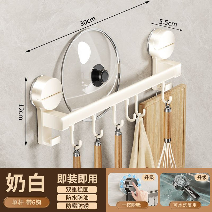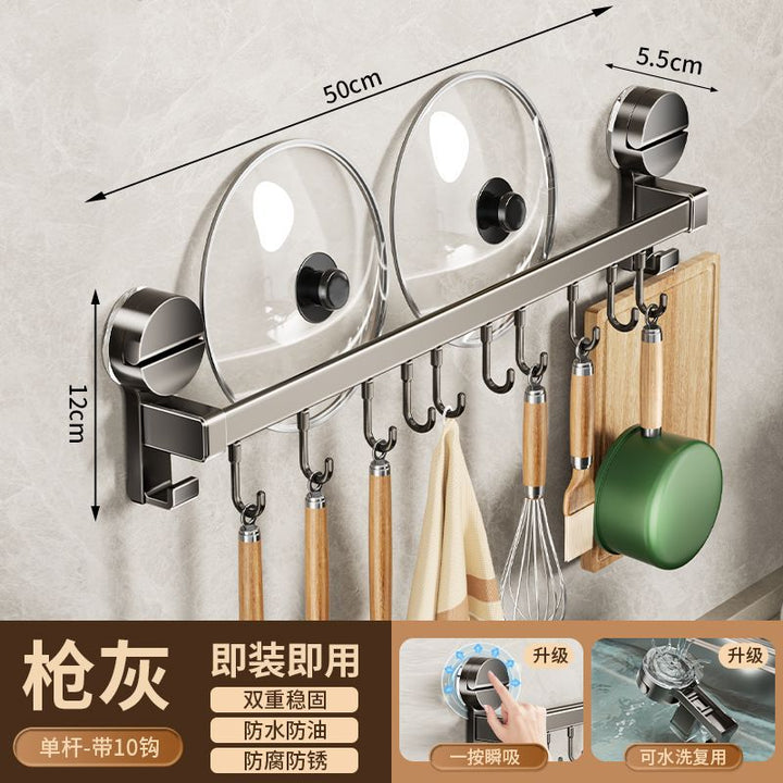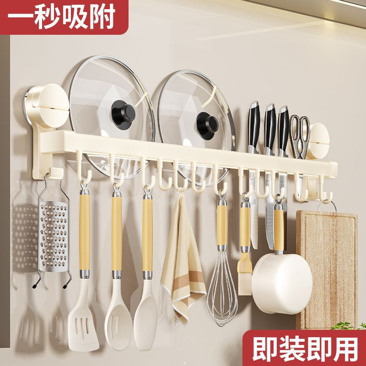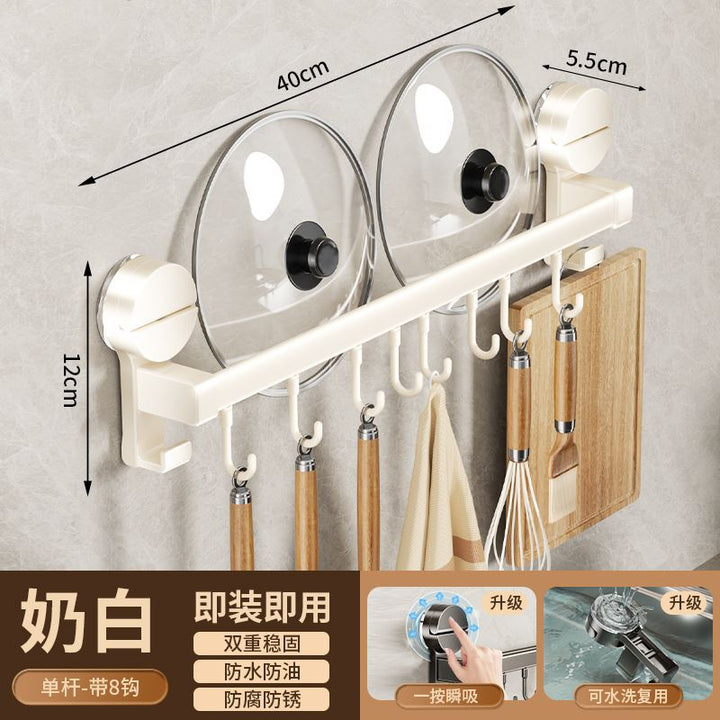Kitchen hook suction cup rack No punching hanging rod spatula knife holder Pot cover integrated hanger Wall hanging row hook storage