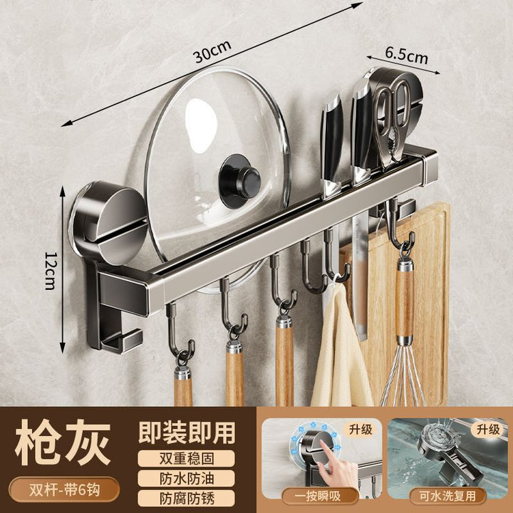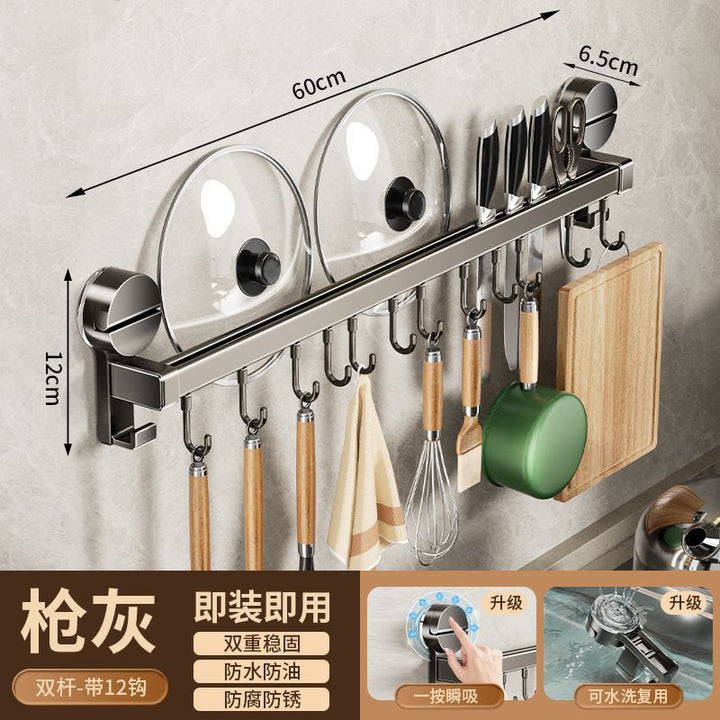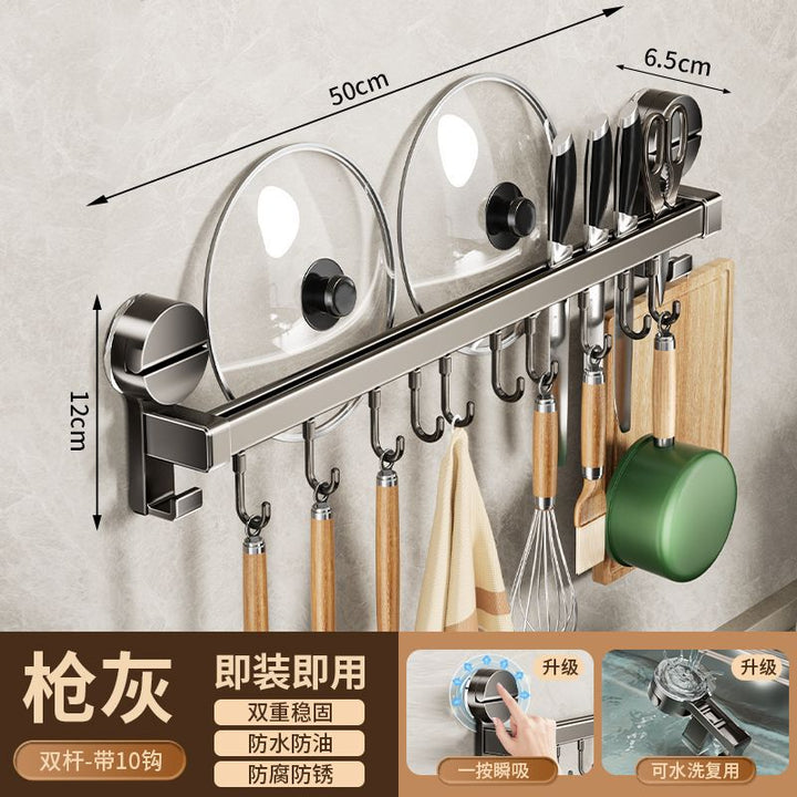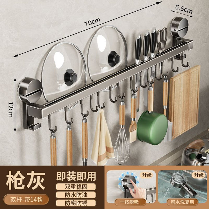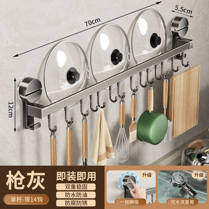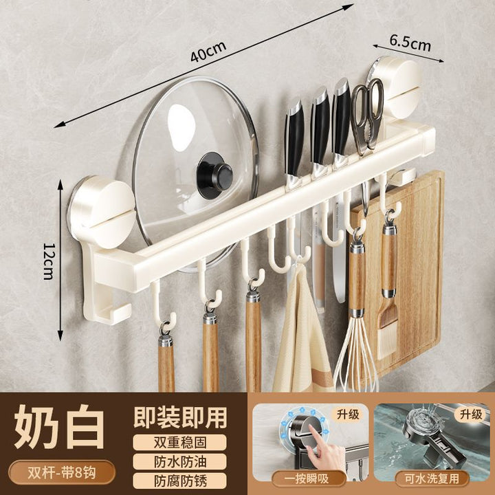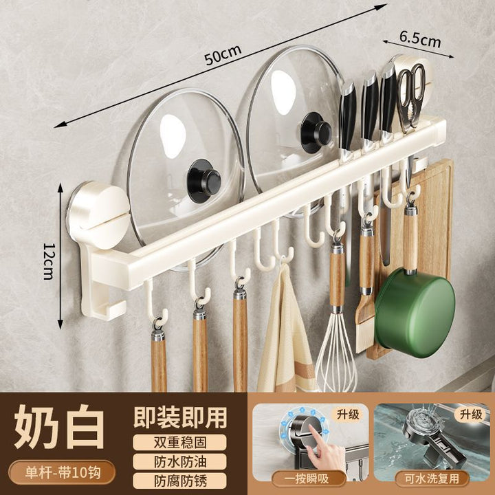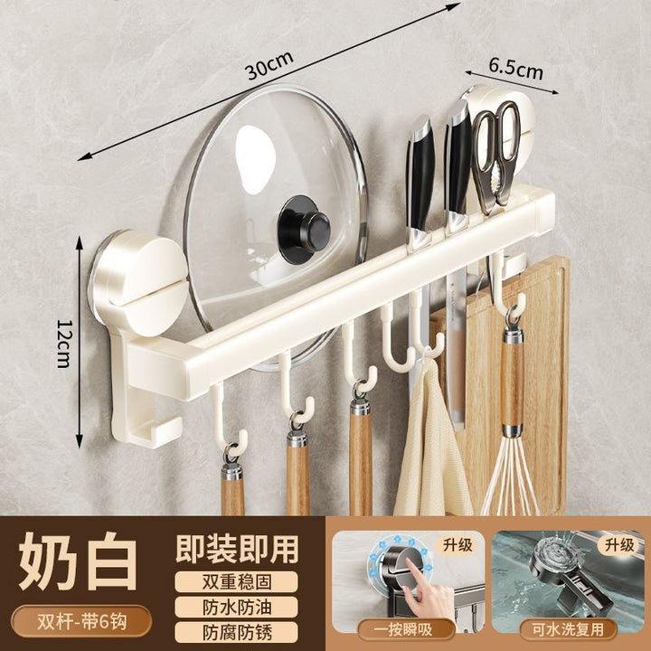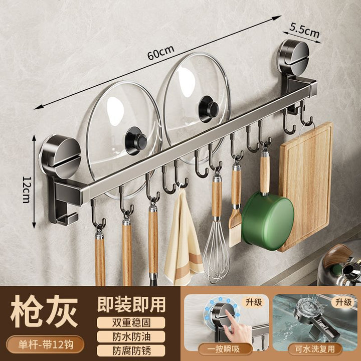 Kitchen hook suction cup rack No punching hanging rod spatula knife holder Pot cover integrated hanger Wall hanging row hook storage