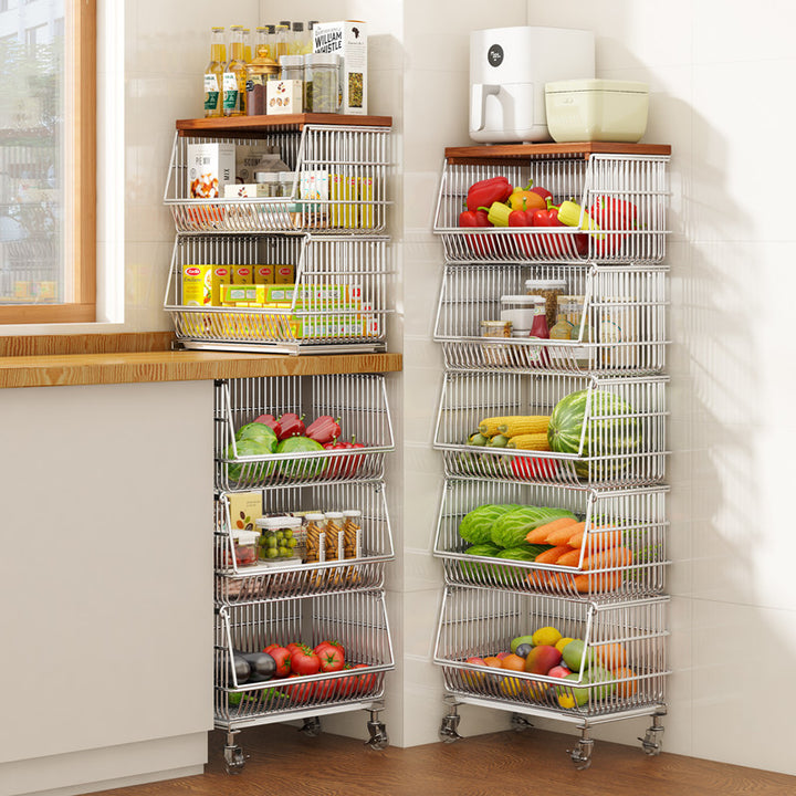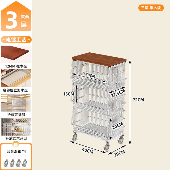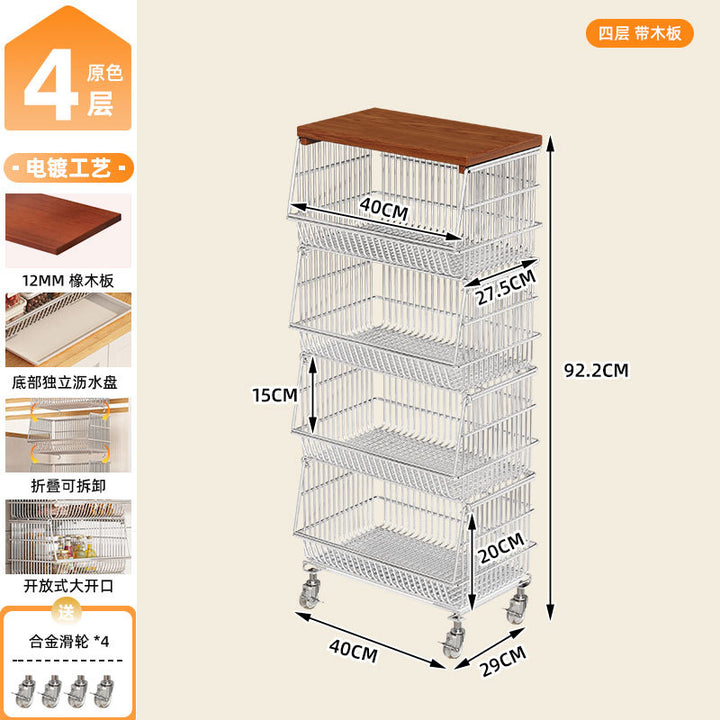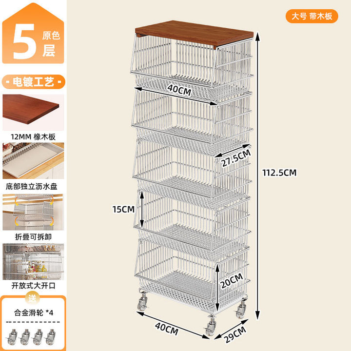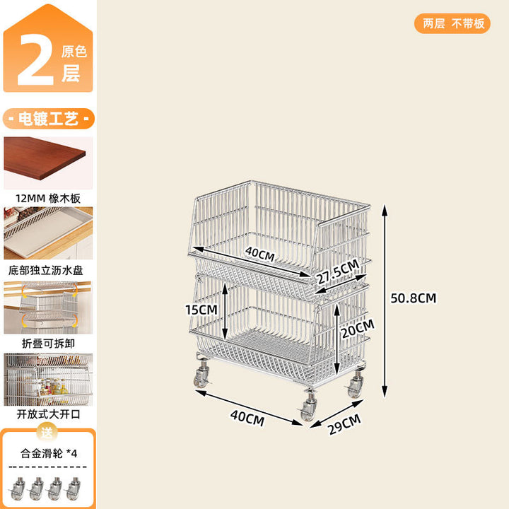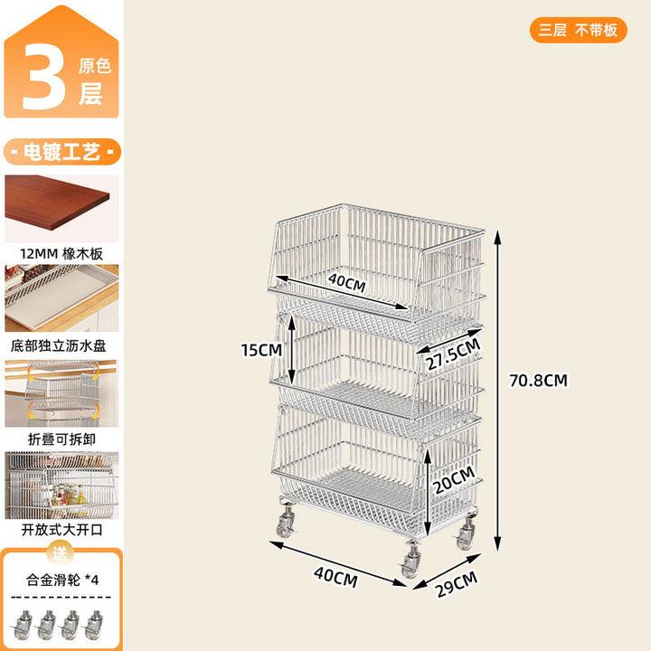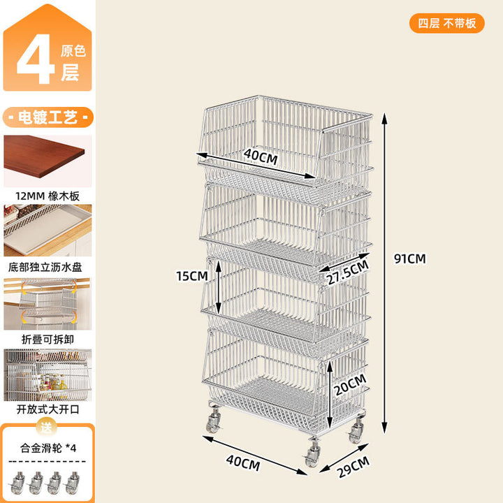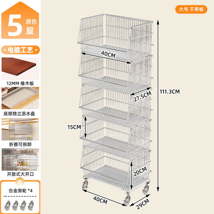 Kitchen Layered Shelf Floor-to-ceiling vegetable basket Fruit and vegetable storage basket Household multifunctional snack trolley