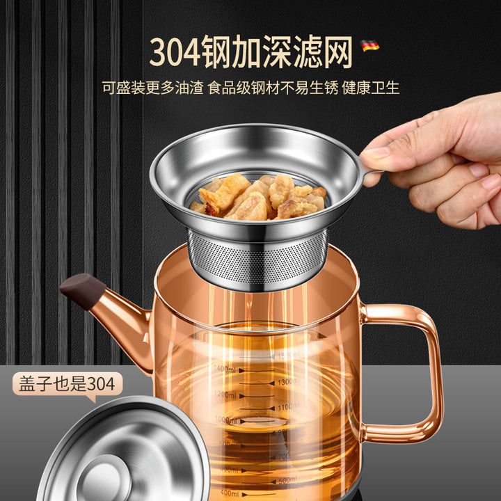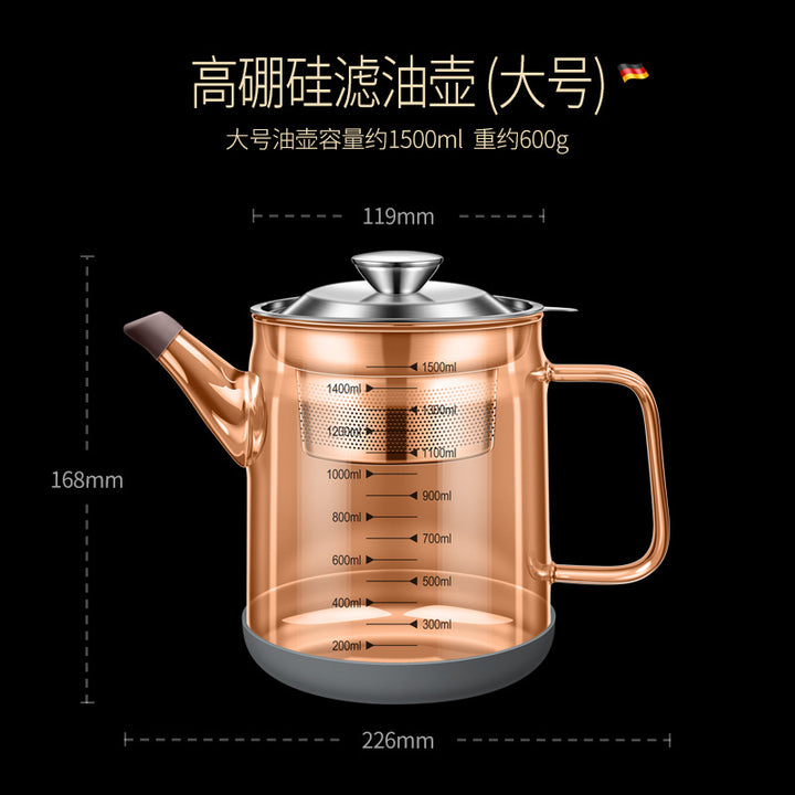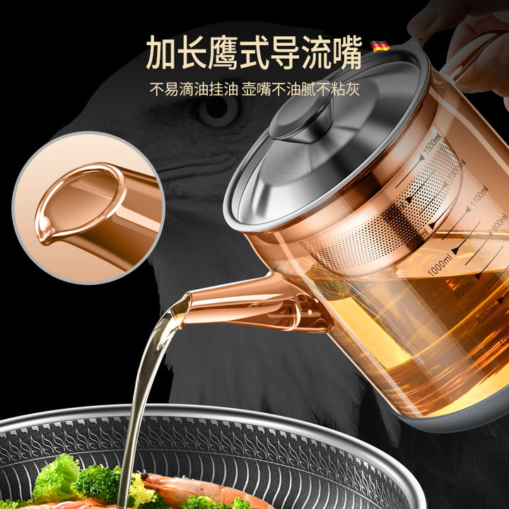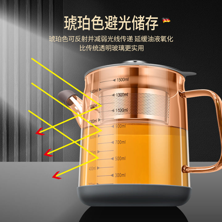 Kitchen material wine bottle Household oil tank pot Filter oil residue pot Glass oil pot Oil filter artifact Oil bottle Storage tank bottle