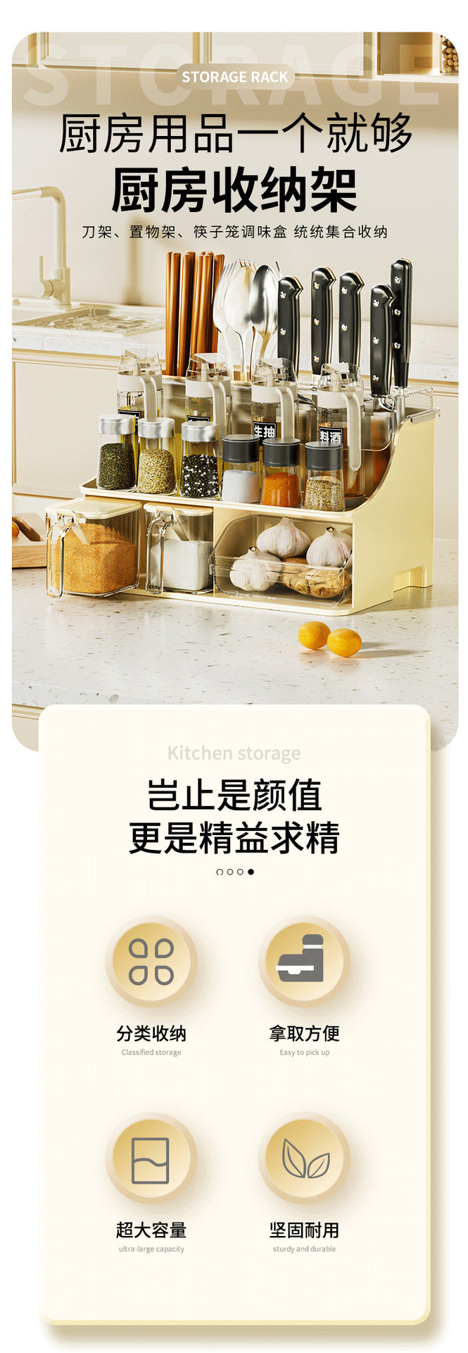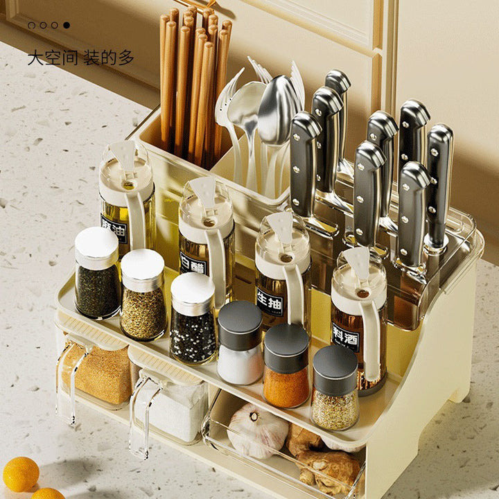 Kitchen Multifunctional Knife Holder Shelf Household Multifunctional Knives Integrated Organization Storage Holder Seasoning Storage Grid