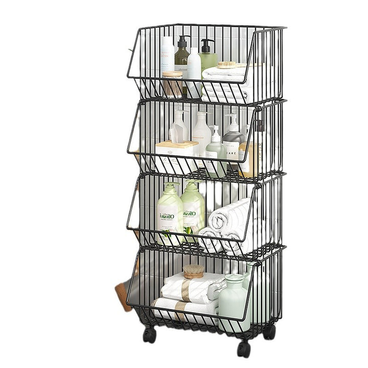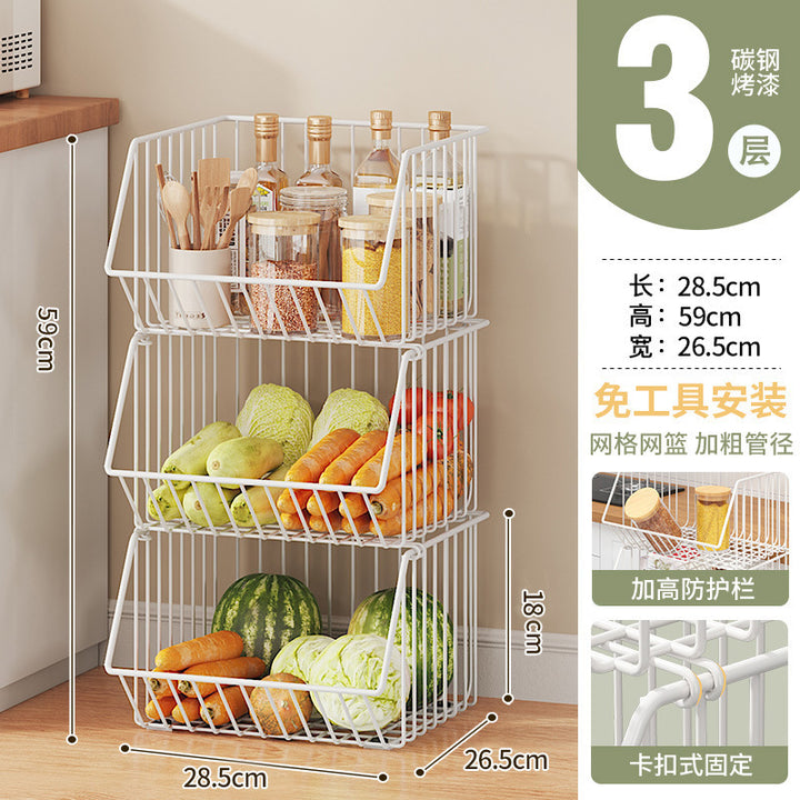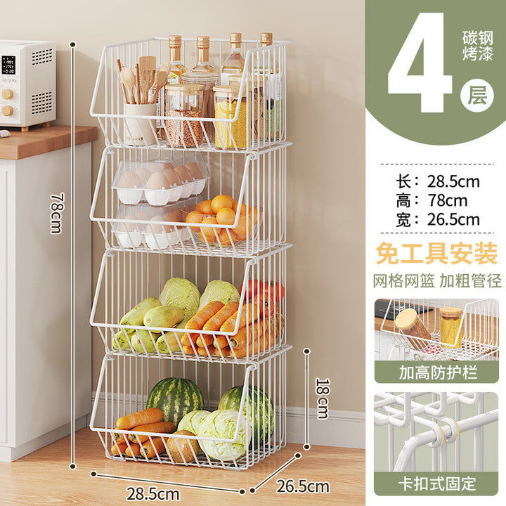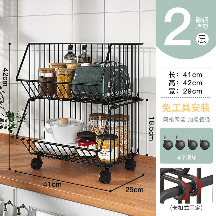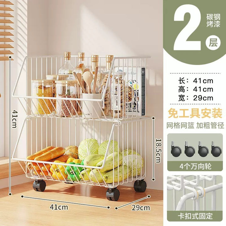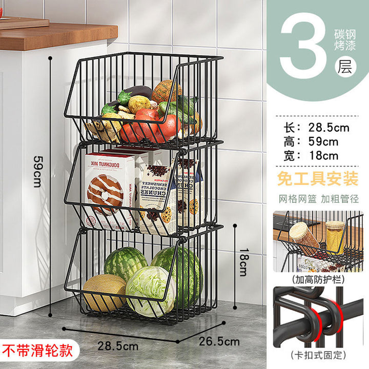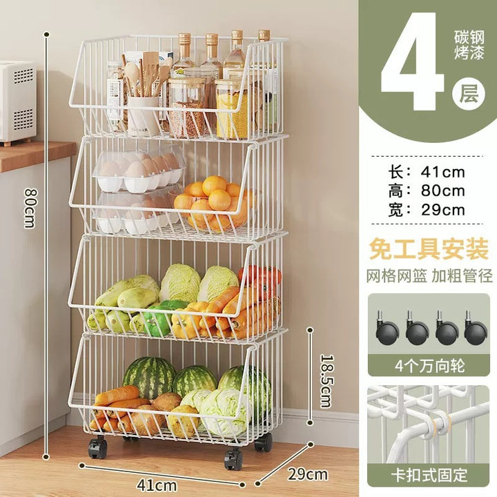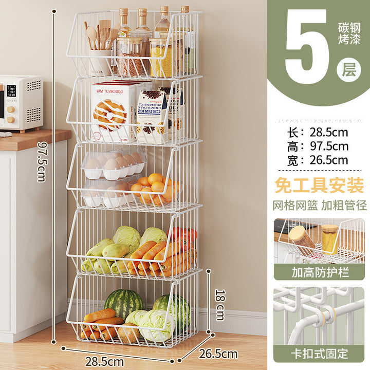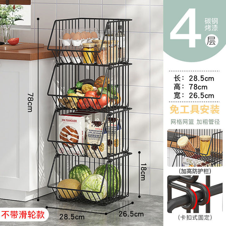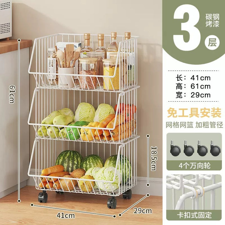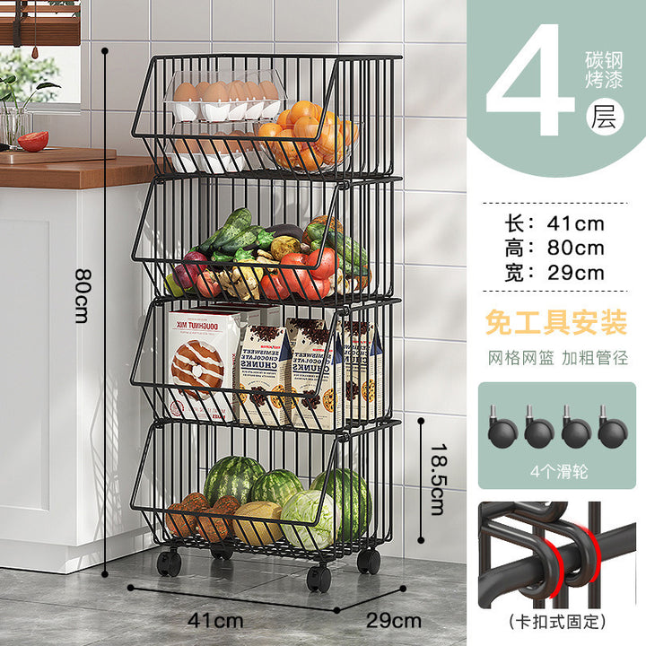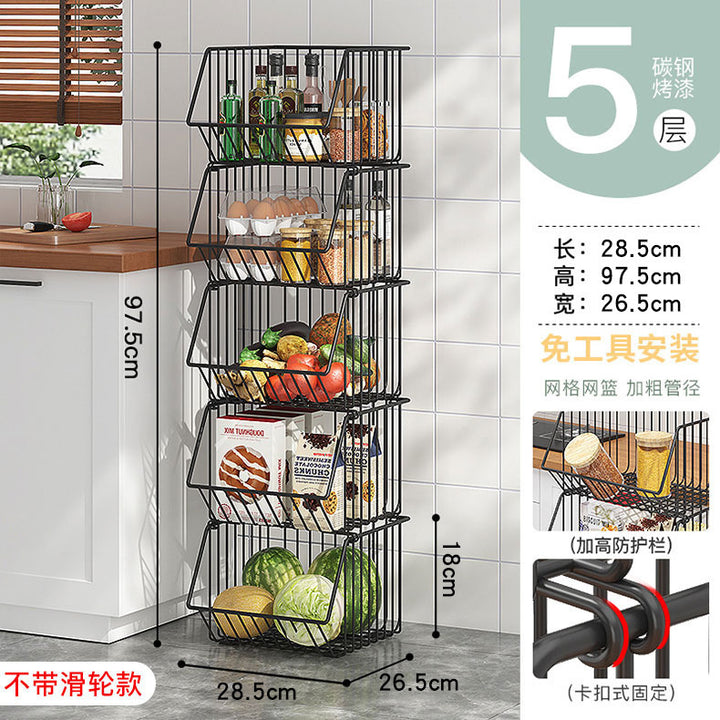 Kitchen rack Floor-to-ceiling multi-layer removable household trolley Vegetable basket Snack ...