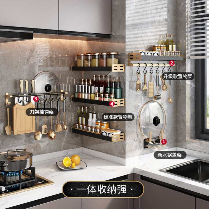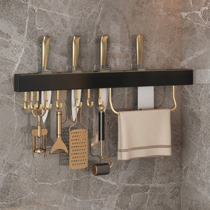 Kitchen rack Wall-mounted non-punching light luxury black gold cutting board knife holder Multifunctional storage pendant seasoning hanger