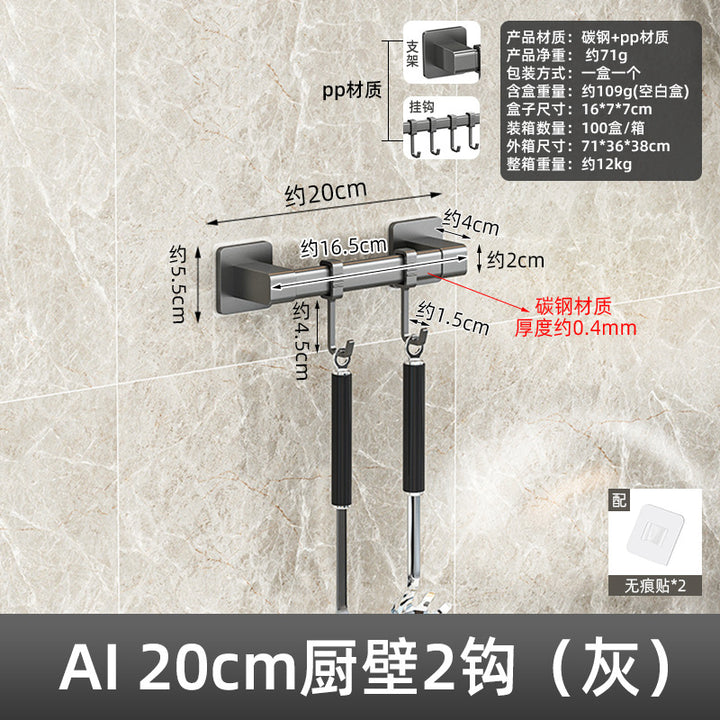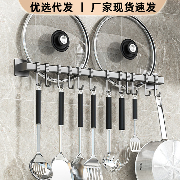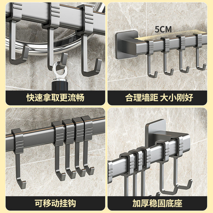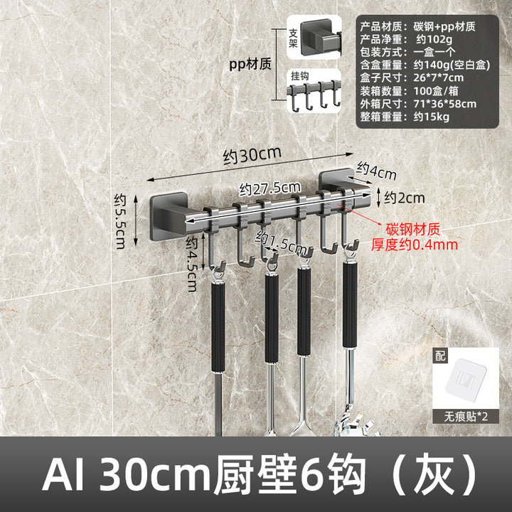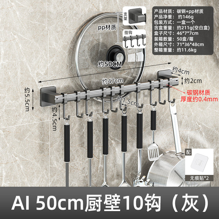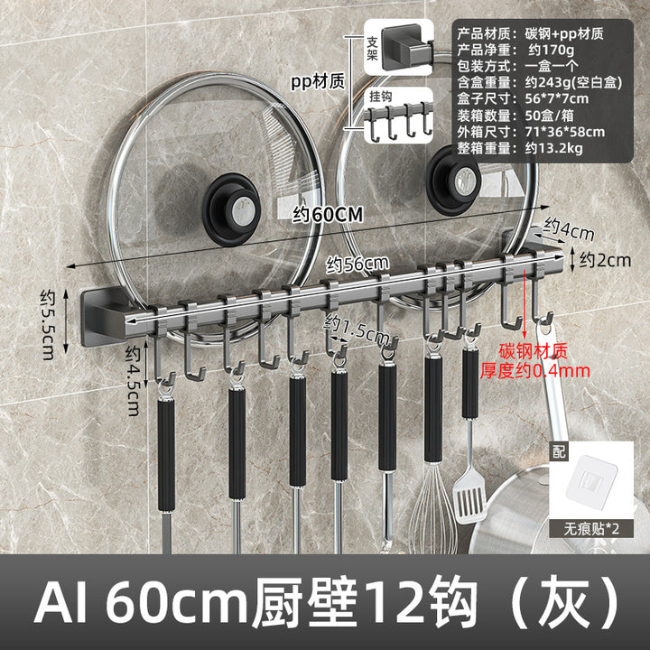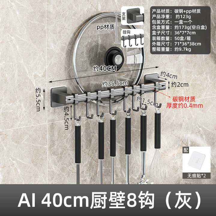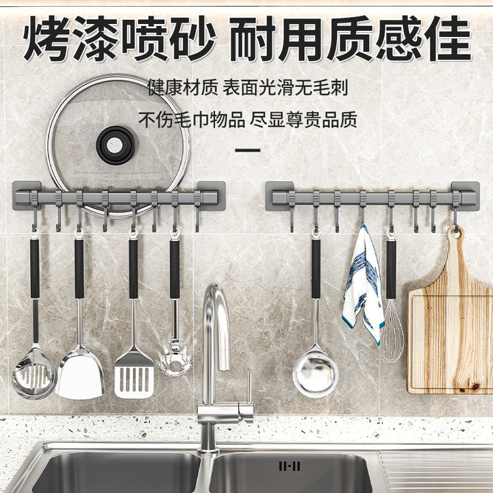 Kitchen removable hanging rod row hook spatula spoon hanger gun gray wall-mounted kitchen utensils storage rack lid rack