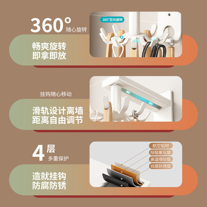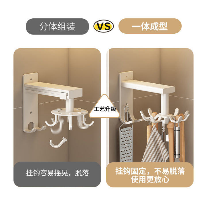 Kitchen Rotating Hook No Punching Wall Hanging Shelf Spoon Spatula Cutting Board Hanger Viscose Strong Wall Nail Free