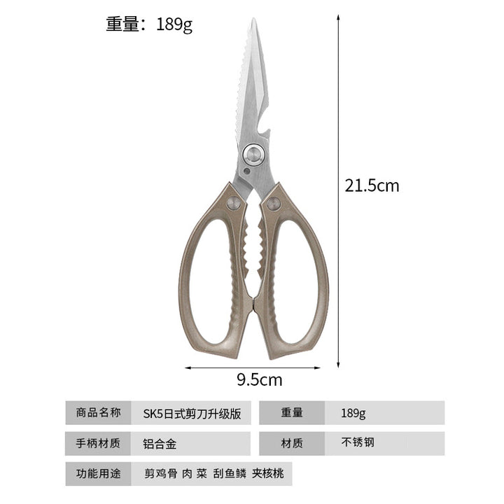 Kitchen Scissors Japanese SK5 Zinc Alloy Handle Strong Chicken Bone Scissors Stainless Steel Multifunctional Scraping Fish Scale Food