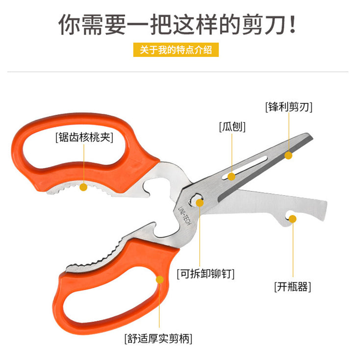 Kitchen scissors multi-functional scissors household stainless steel multi-purpose can be opened bottle clip walnut fish scissors removable melon p...