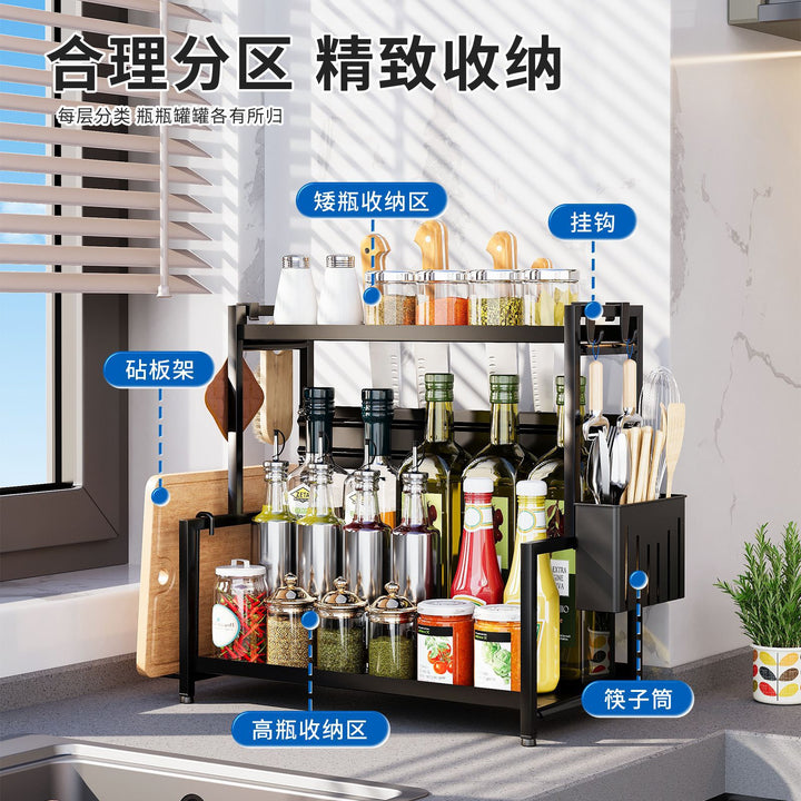 Kitchen seasoning rack Multifunctional countertop seasoning jar Chopsticks cartridge Knife holder Cutting board rack Kitchenware storage rack