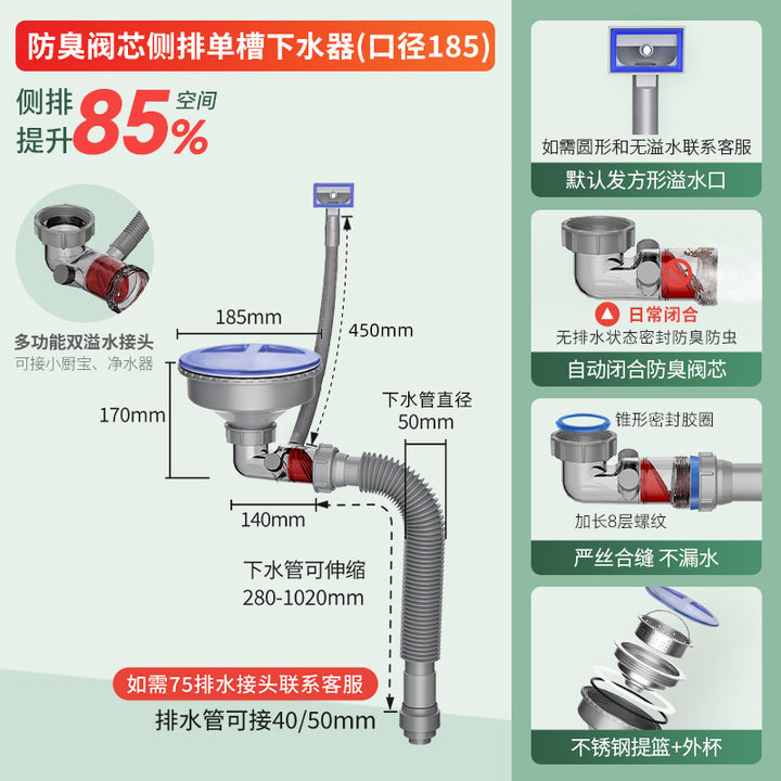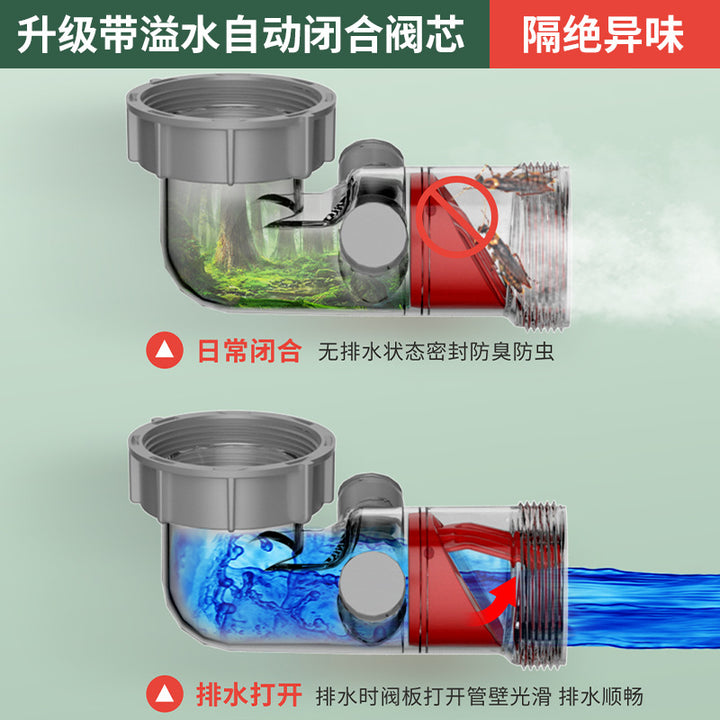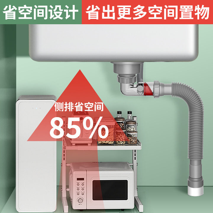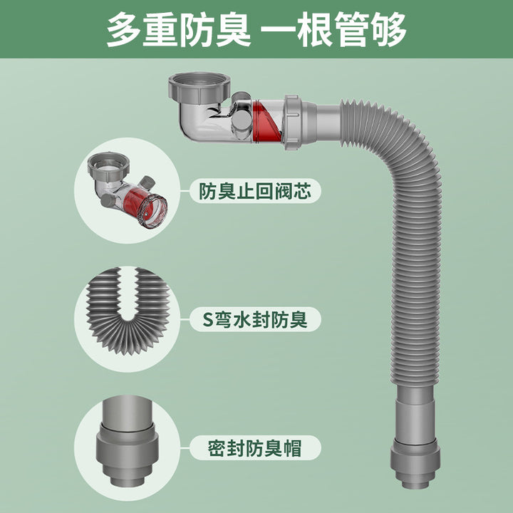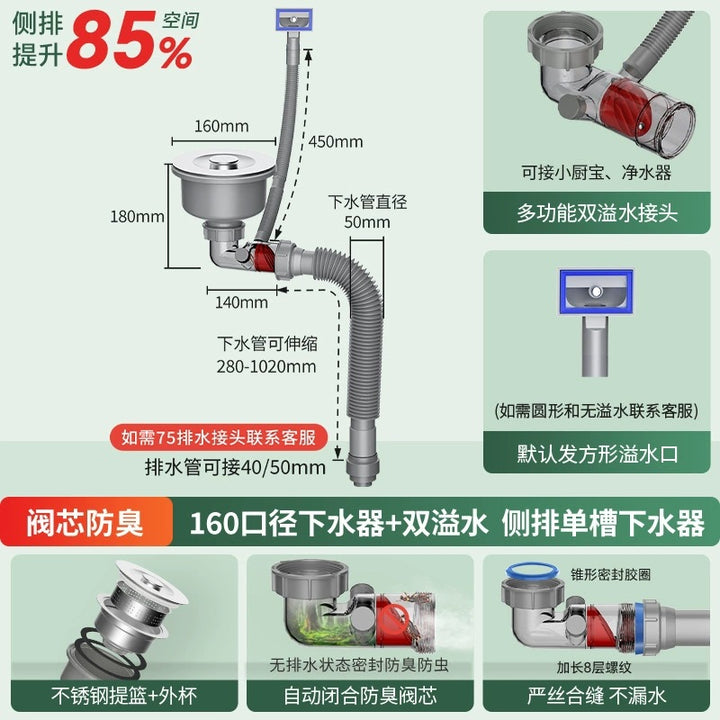 Kitchen sewer 304 stainless steel deodorant drain pipe, vegetable basin side row space-saving sewer pipe set wholesale