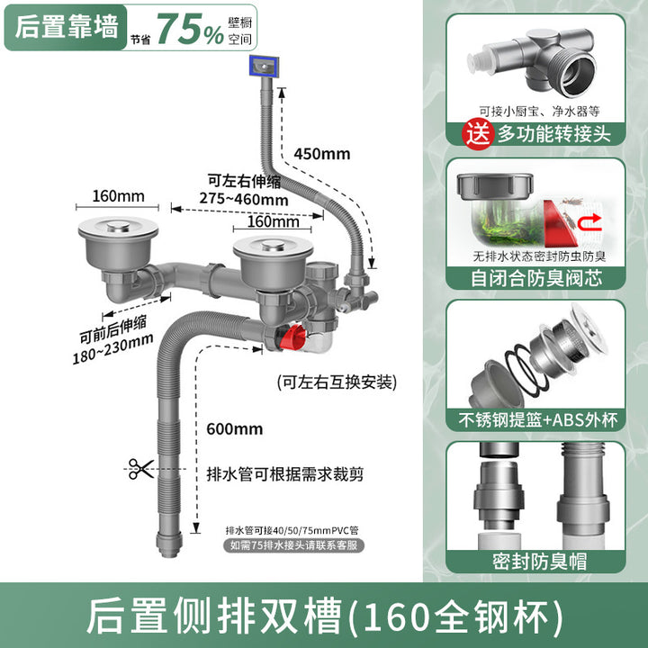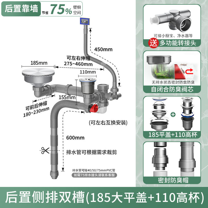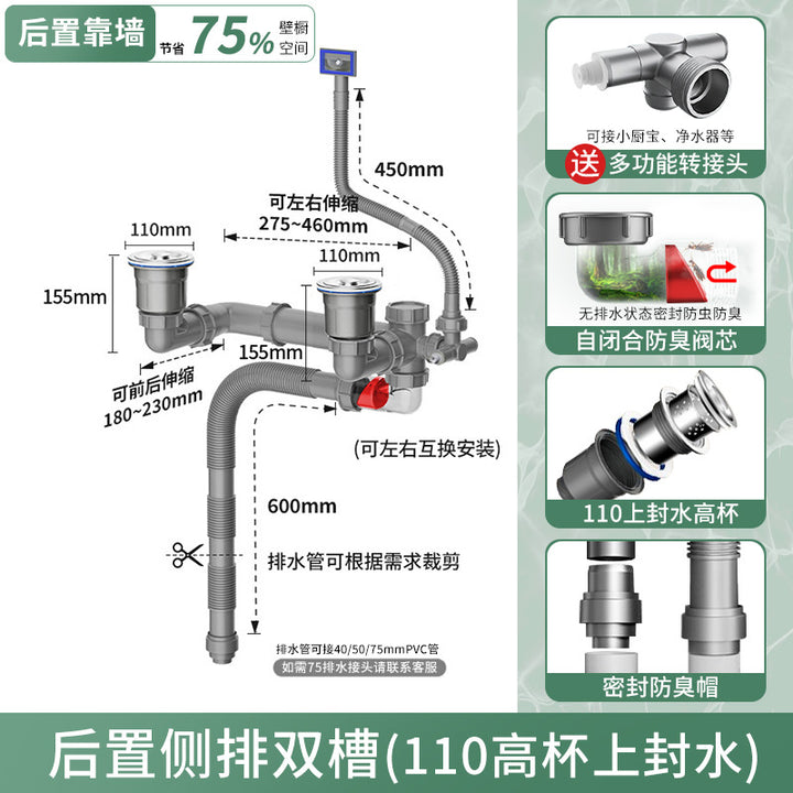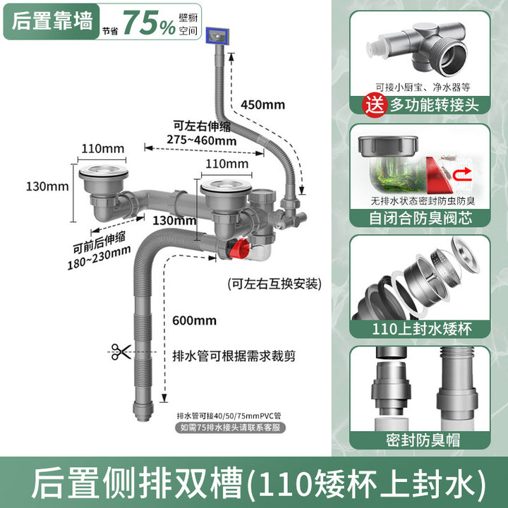 后置双槽防臭+110矮杯上封水(201)+多功能净水机接口, 后置双槽防臭+110矮杯上封水(304)+多功能净水机接口, 后置双槽防臭+110高杯上封水(201)+多功能净水机接口, 后置双槽防臭+110高杯上封水(304)+多功能净水机接口, 后置双槽防臭+140矮杯(201)+110高杯(201)+多功能净水机接口, 后置双槽防臭+140矮杯(304)+110高杯(304)+多功能净水机接口, 后置双槽防臭+185大平盖+110高杯(201)+多功能净水机接口, 后置双槽防臭+185大平盖+110高杯(304)+多功能净水机接口, 后置双槽防臭+185大平盖+114矮杯(201)+多功能净水机接口, rear double slot deodorant + 185 large flat cover + 114 short cup (304) + multi-functional water purifier interface, rear double slot deodorant + 185 large flat cover + 140 short cup (201) + multi-functional water purifier interface, rear double slot deodorant + 185 large flat cover + 140 short cup (304) + multi-functional water purifier interface, Rear double slot deodorant + 160 all steel (304) + multi-functional water purifier interface, Rear double-slot hoist deodorant + 160 all-steel + 110 all-steel (304) + multi-functional water purifier interface, Rear double-slot deodorant side row + 160 all-steel + 140 all-steel (304) + multi-functional water purifier interface, Side deodorant valve (40 pipes), 侧排防臭阀(50管), 双溢水侧排(50管), 60cm波纹管(40管), 60cm波纹管(50管) |