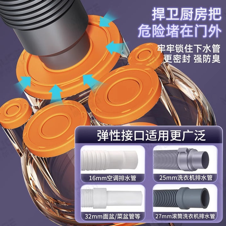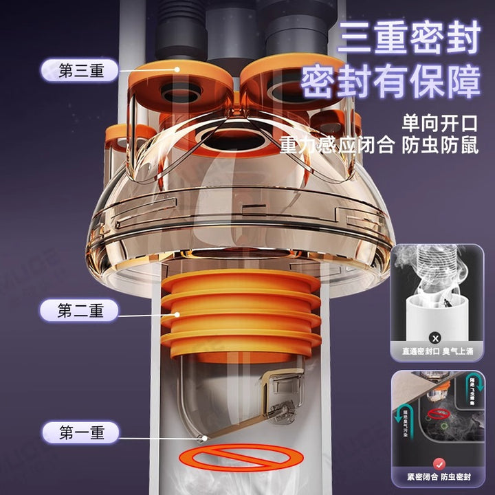 Kitchen sewer pipe three-end sewer anti-odor artifact drain pipe separator check valve floor drain sealing plug