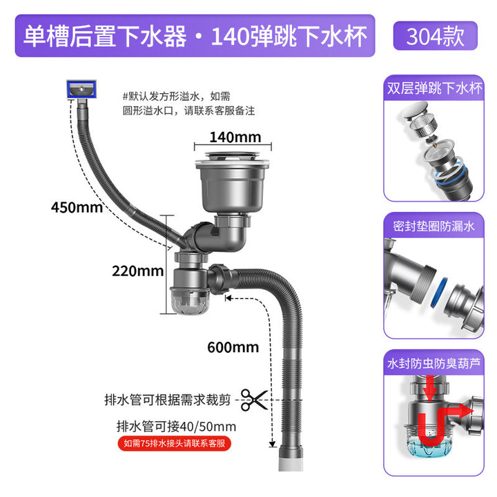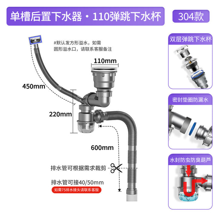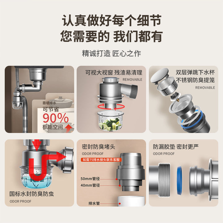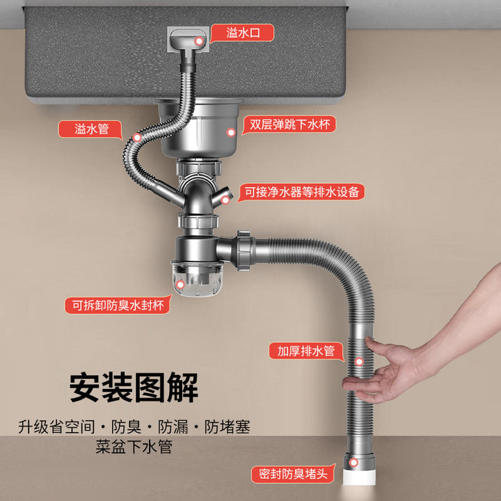 Kitchen sewer pipe, vegetable basin, sewer accessories, drain pipe, full set of anti-odor artifacts, universal sewer pipe fittings