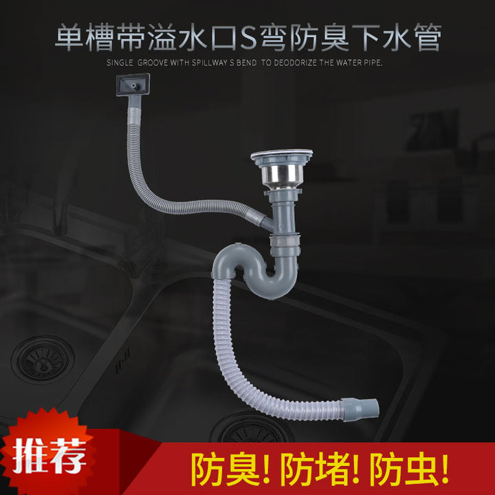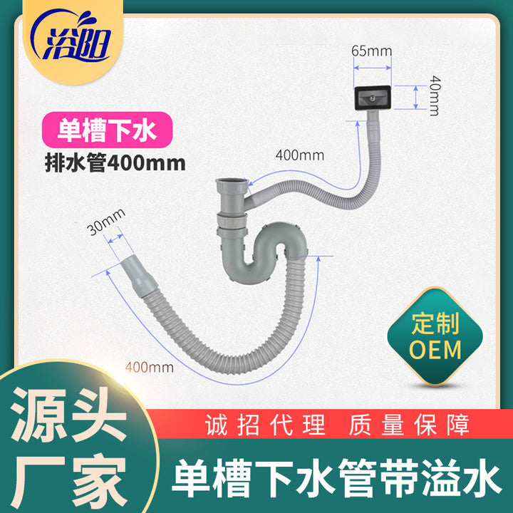 Kitchen single sink sewer pipe, vegetable basin, sink sewer, stainless steel drain pipe, dishwashing sink sewer accessories