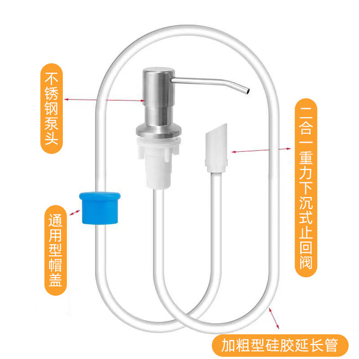Kitchen sink 304 stainless steel soap dispenser extension tube, sunken check valve press detergent dispenser