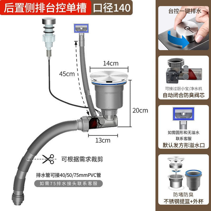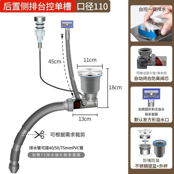 Kitchen sink sewer pipe single slot deodorant and anti-blocking sewer drain pipe full set of universal Taiwan control sewer pipe