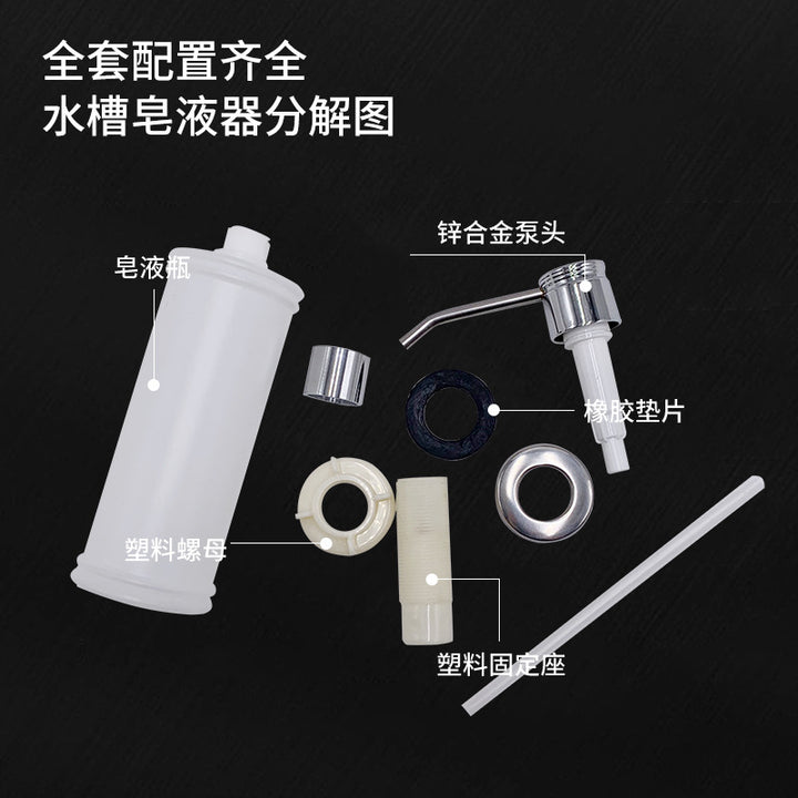 Kitchen sink soap dispenser, free rotating zinc alloy pump head soap dispenser, press outlet kitchen soap dispenser