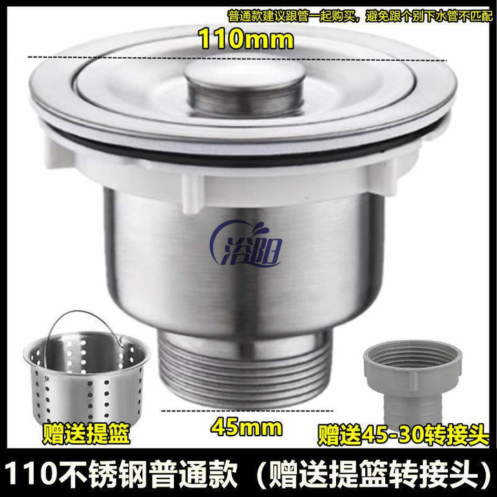 [Direct model] Single tank sewer set, [直通款]单槽下水管, 201不锈钢菜盆下水器, 304不锈钢下水器, 水槽提篮, 水槽盖子 |