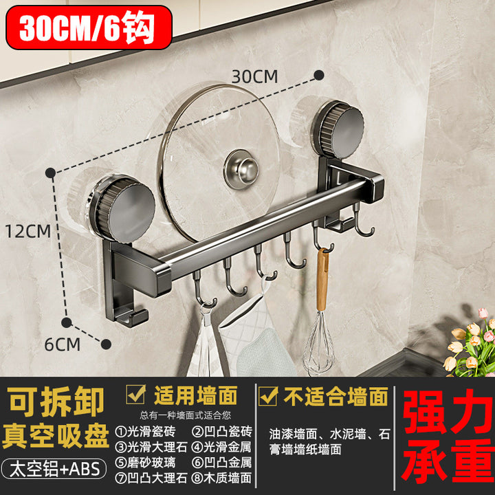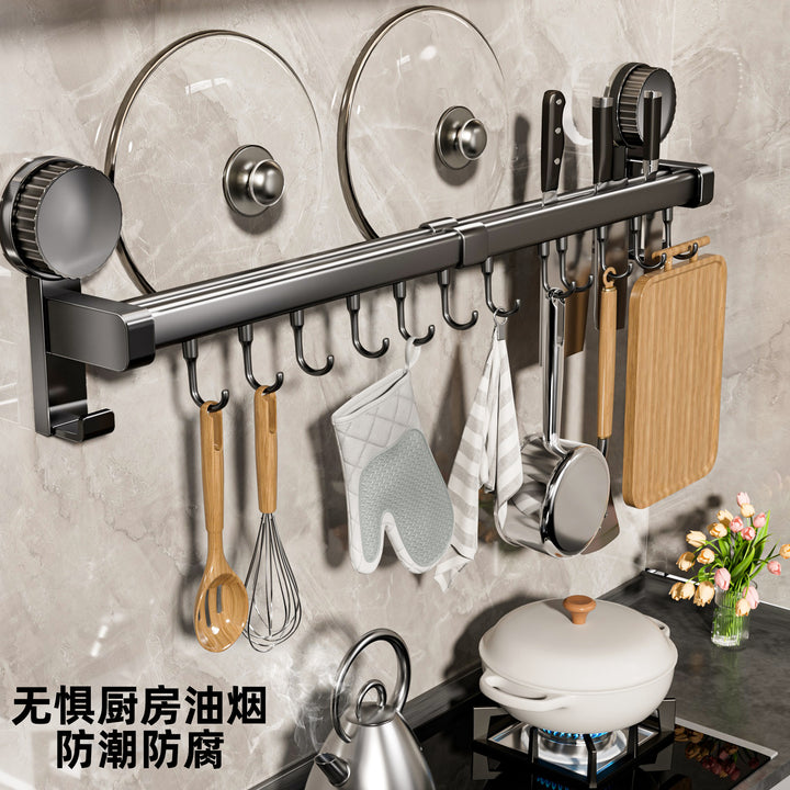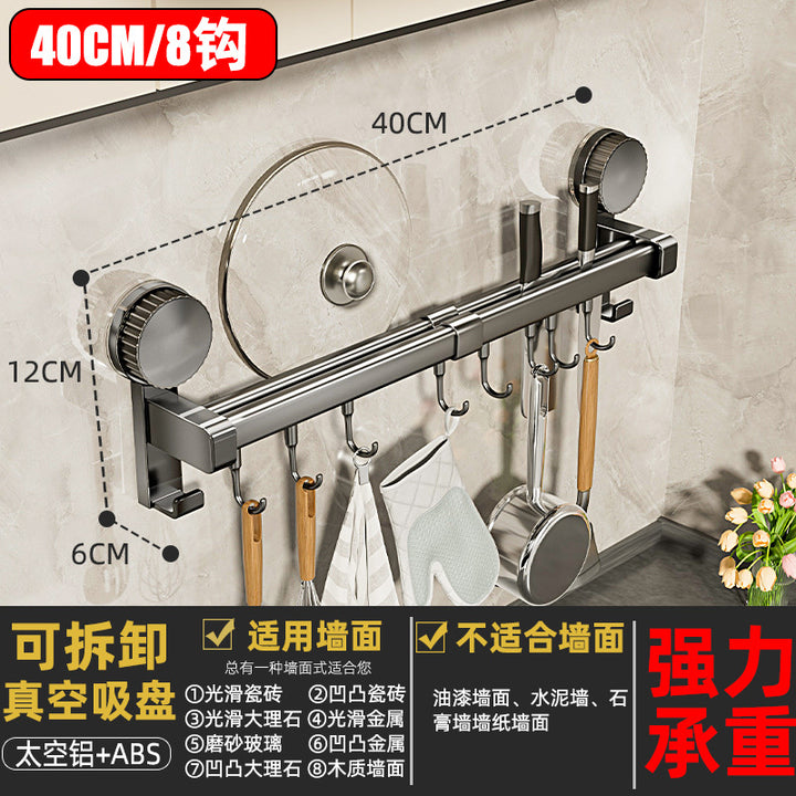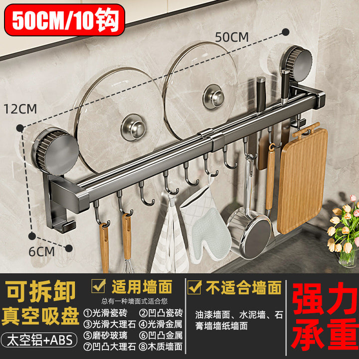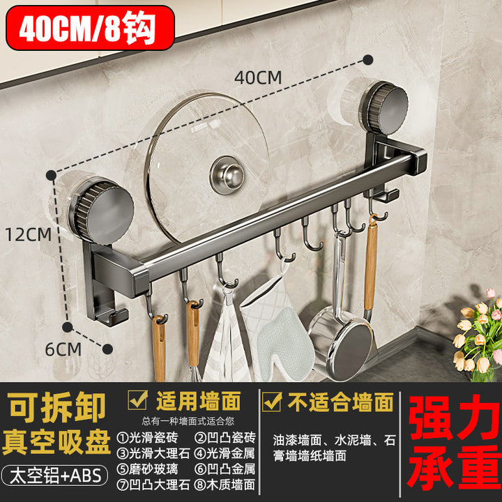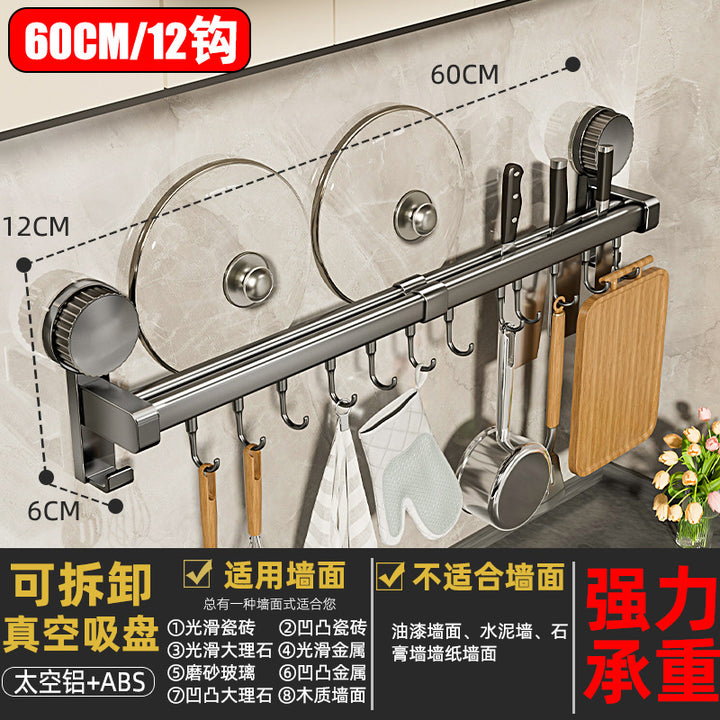 Kitchen suction cup rack No punching hook hanging rod spatula cover spoon knife integrated hanger cutting board storage rack