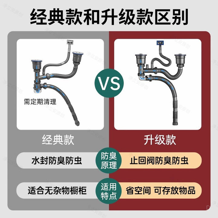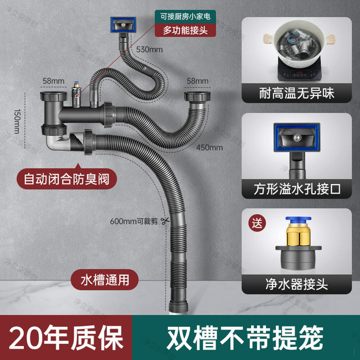 Kitchen wash basin, sewer pipe, sink, sink deodorant, full set of sewer, double basin, double tank accessories, drain pipe set.
