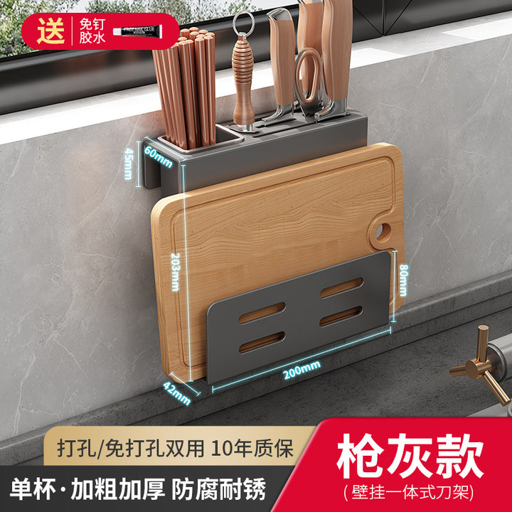 Knife holder Wall-mounted stainless steel kitchen knife Chopsticks cartridge cage Pot lid Cutting board Integrated multi-functional storage Kitchen...