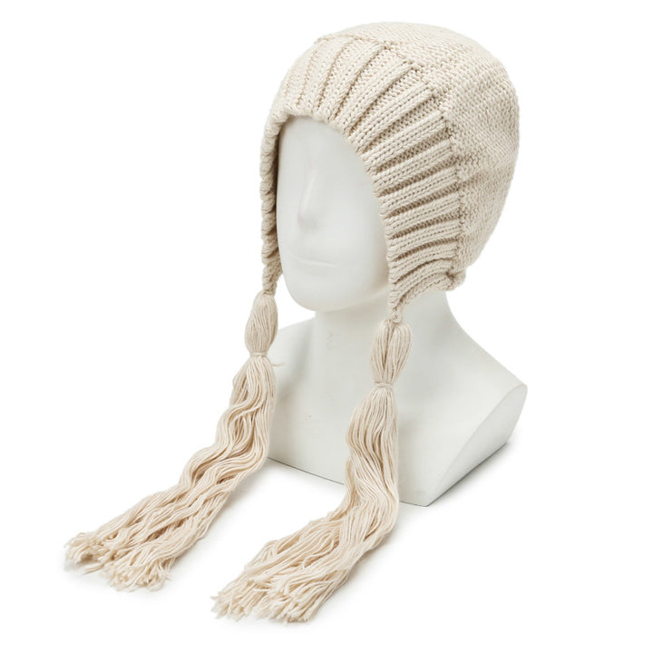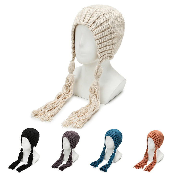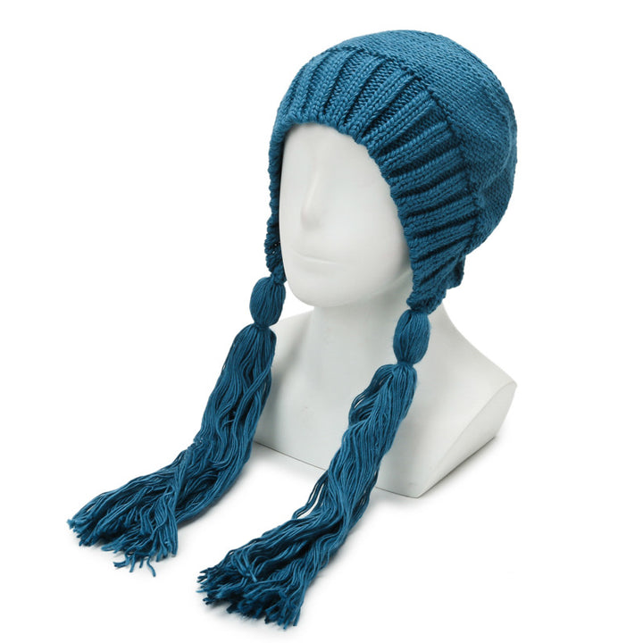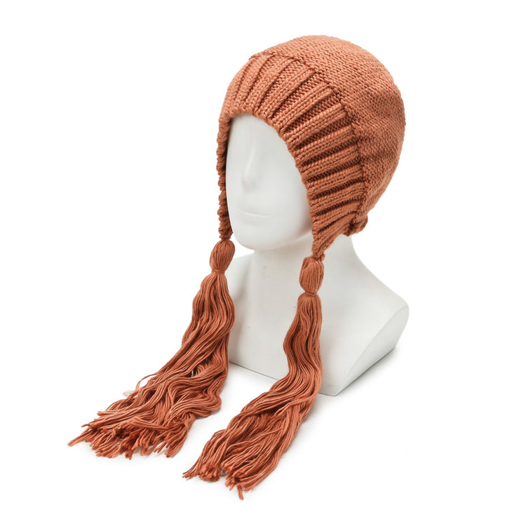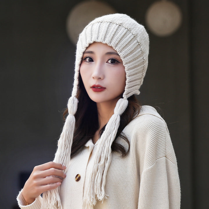Knitted hat women's autumn and winter warm cute fashion outdoor wool hat Lei Feng hat sweet fringed bag head ear protection hat