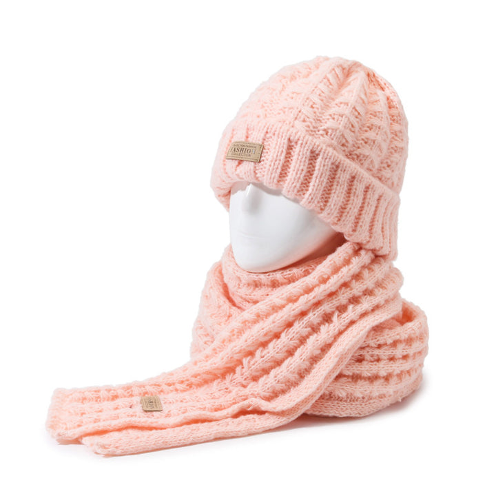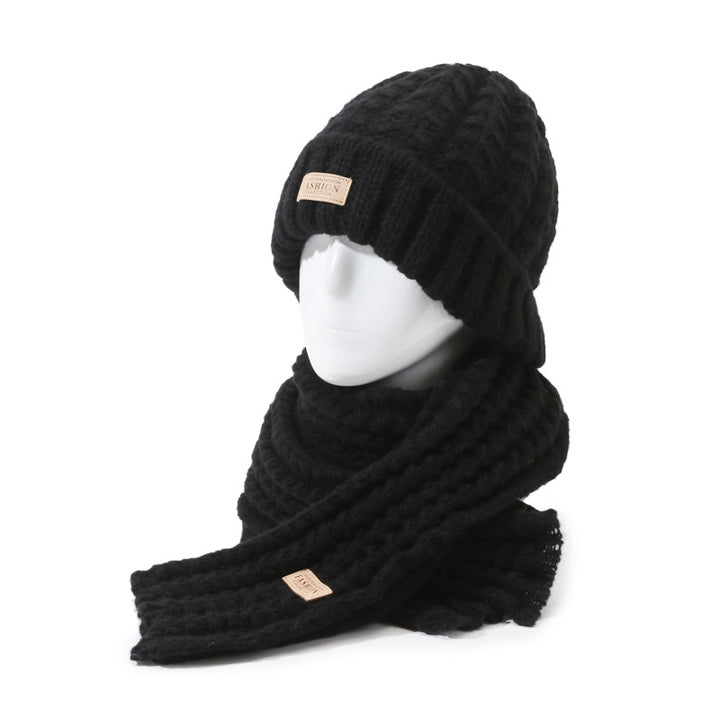 Knitted wool hat scarf two-piece set winter warm ear protection cotton hat Korean version student versatile solid color scarf cold hat