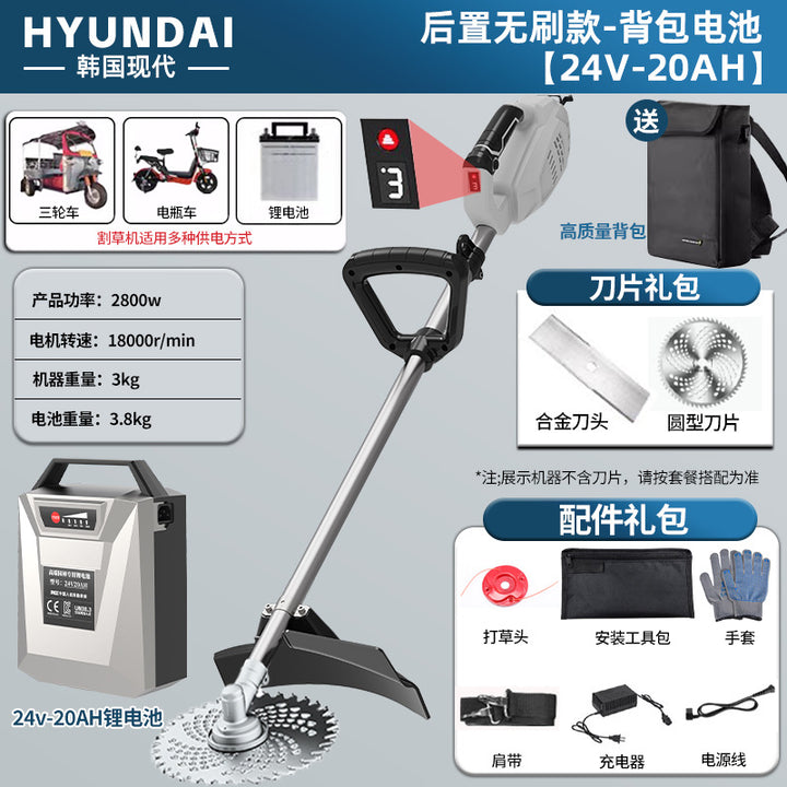 Korea Hyundai Electric Lawn Mower Small New Rechargeable Knapsack High Power Lithium Battery ...