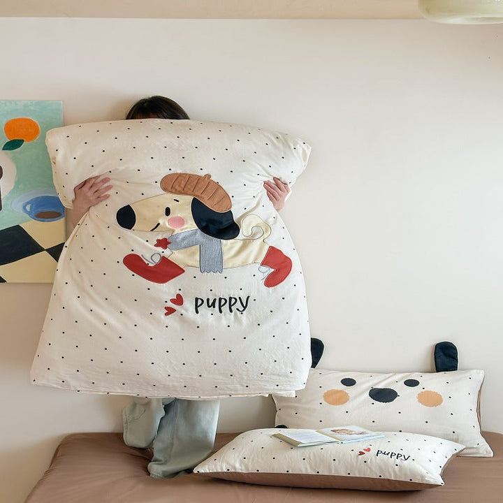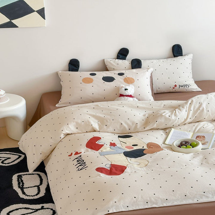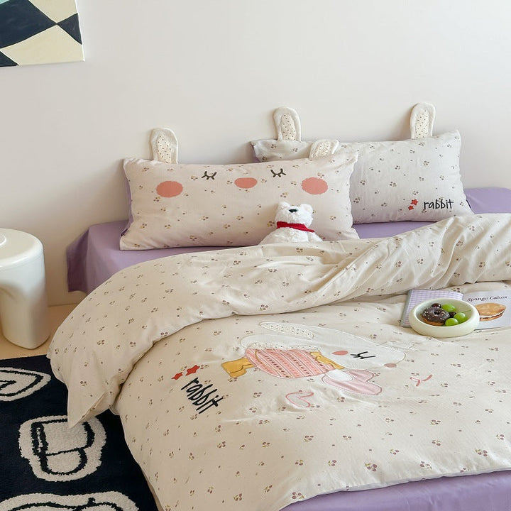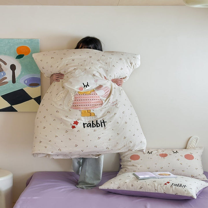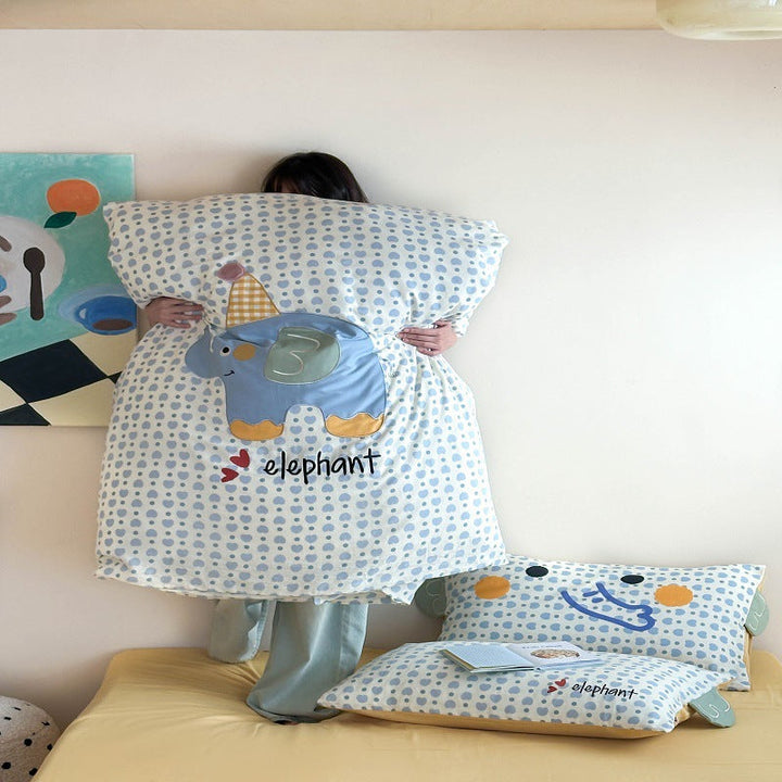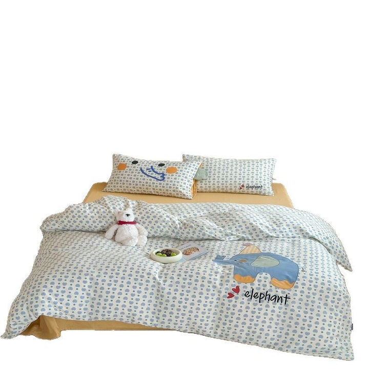 Korean baby elephant class A cotton double-layer yarn cartoon three-dimensional sticker embroidered quilt cover bedding student dormitory four seas...