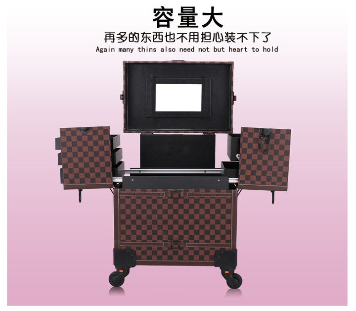 Korean fashion trend makeup artist pull rod cosmetic case universal wheel toolbox large capacity storage box cosmetic storage
