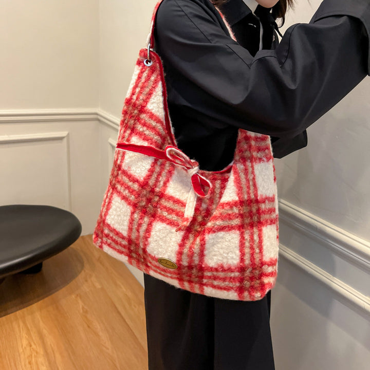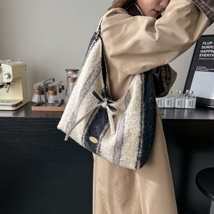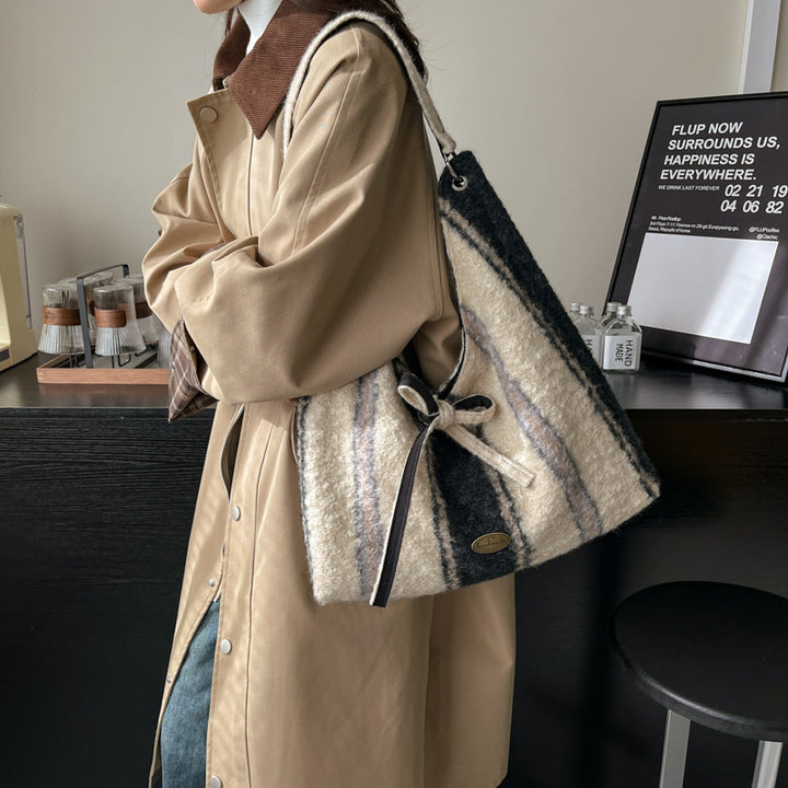 Korean new autumn and winter plush lazy versatile double-sided shoulder tote bag soft waxy Japanese student bag female