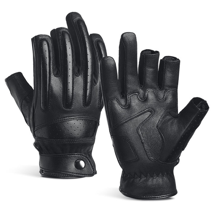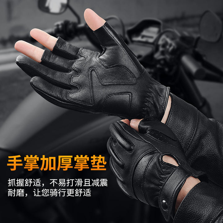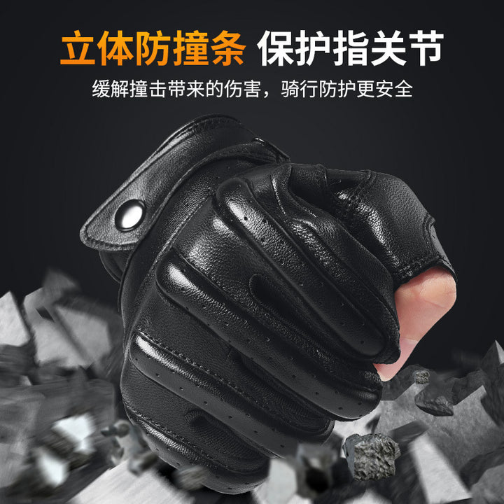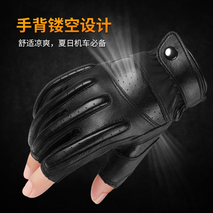 Korean sheepskin riding gloves leak three fingers sunscreen breathable outdoor men's Harley motorcycle leather gloves