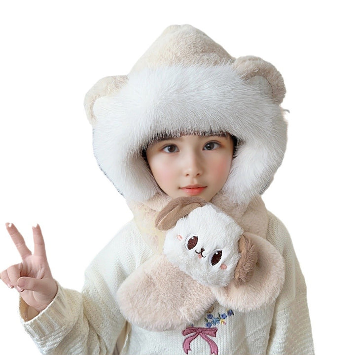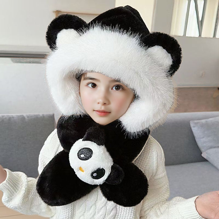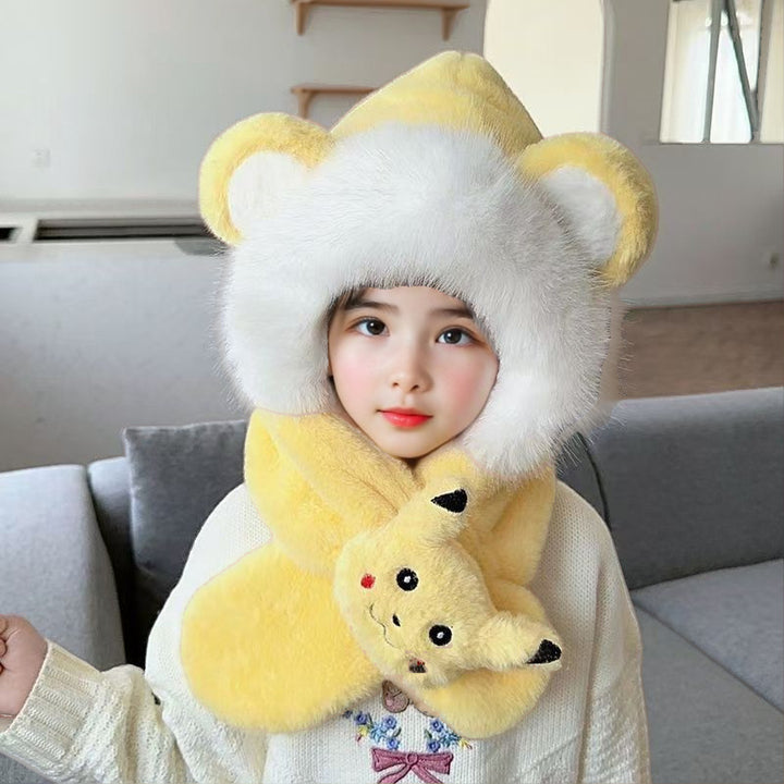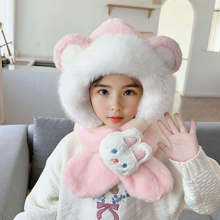 Korean version of cute super cute children's fruit hat scarf integrated winter baby boys and girls ear protection pullover hat two-piece set