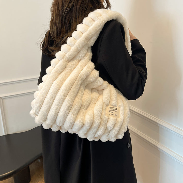 Korean version of fluffy large-capacity plush shoulder bag autumn and winter new commuting simple casual handbag fluffy vest bag