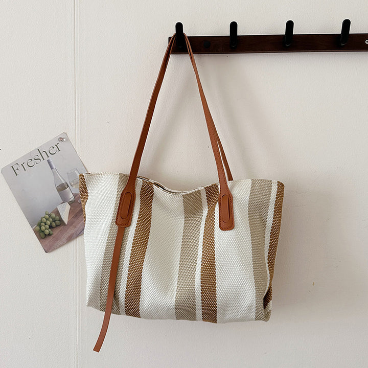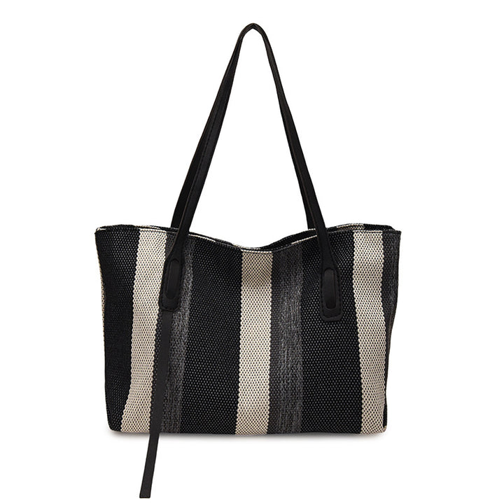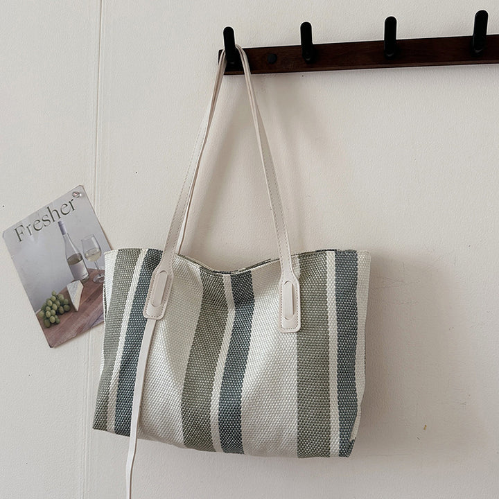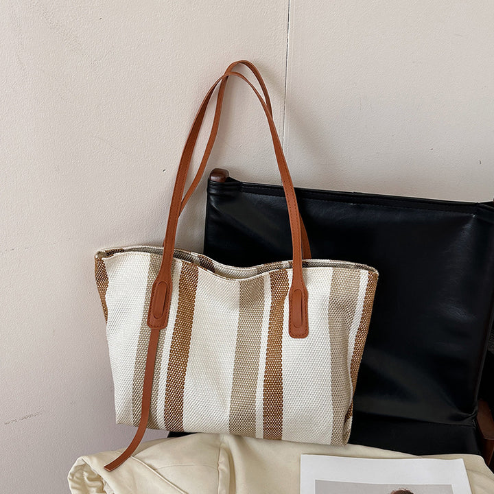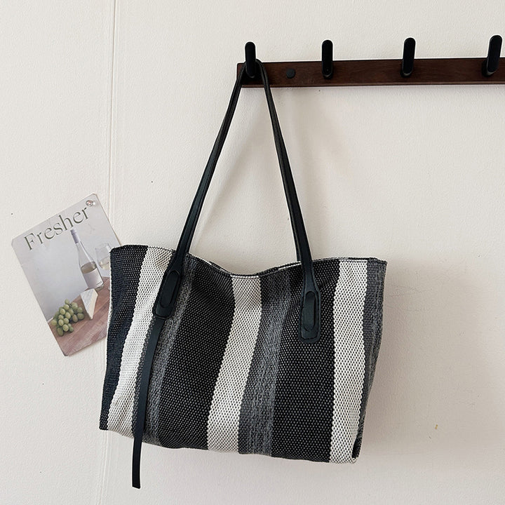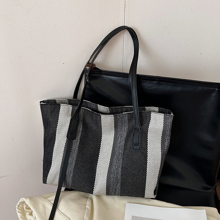 Korean version of large-capacity women's shoulder bag women's 2025 new simple vertical striped casual tote bag fashion handbag