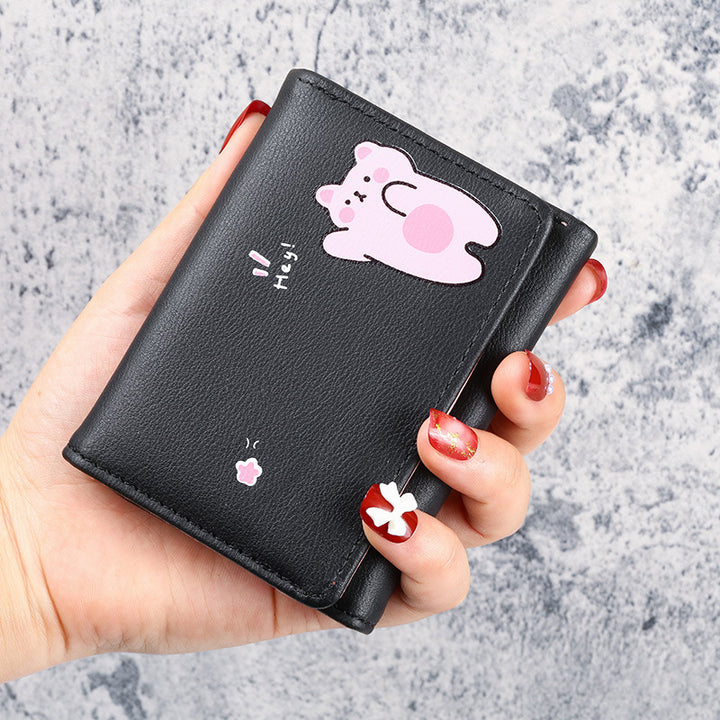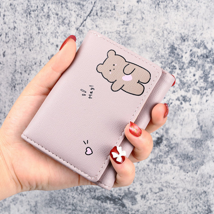 Korean version of small wallet women's three-fold short print cute simple student multi-card change bag cartoon women's wallet