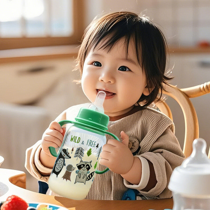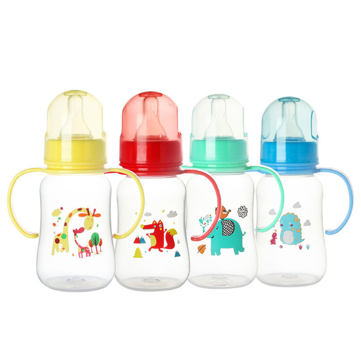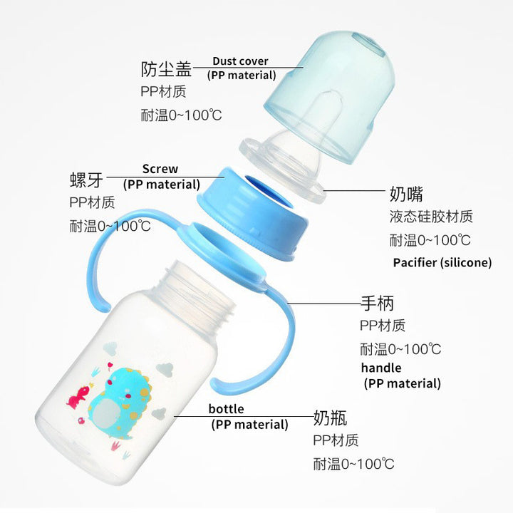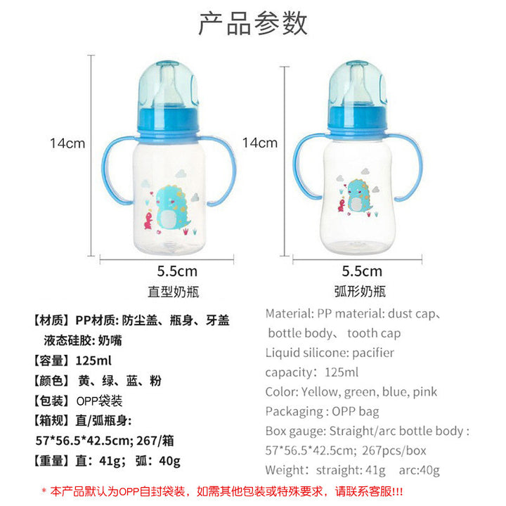 Label PP bottle 125ml arc feeding bottle with handle anti-drop and anti-flatulence plastic bottle manufacturer wholesale