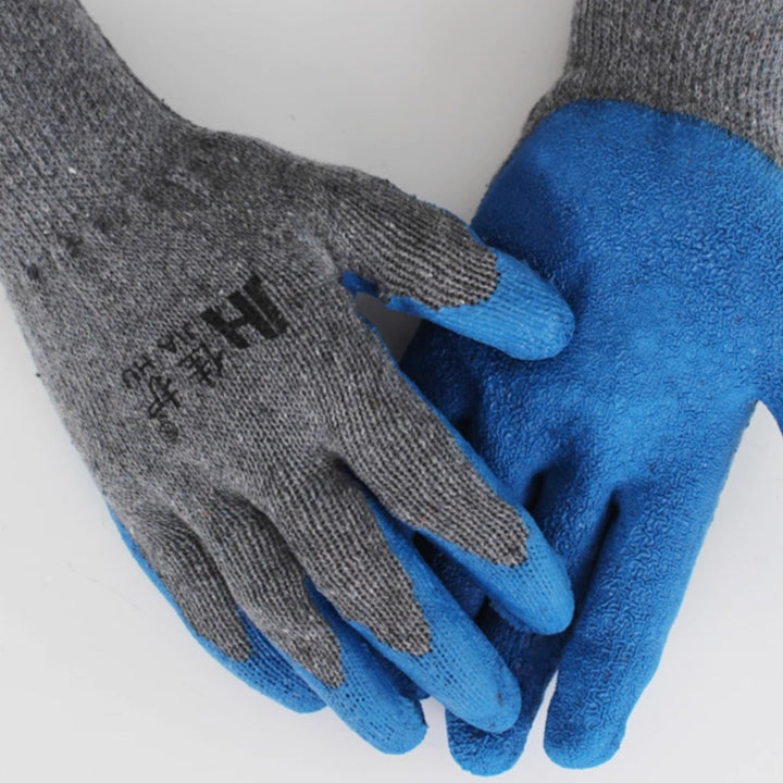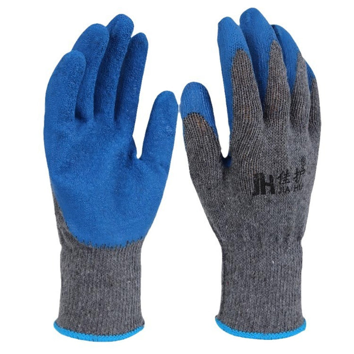 Labor gloves dipped and glued gray yarn wrinkle non-slip and wear-resistant durable breathable waterproof protective cotton thread Labor gloves